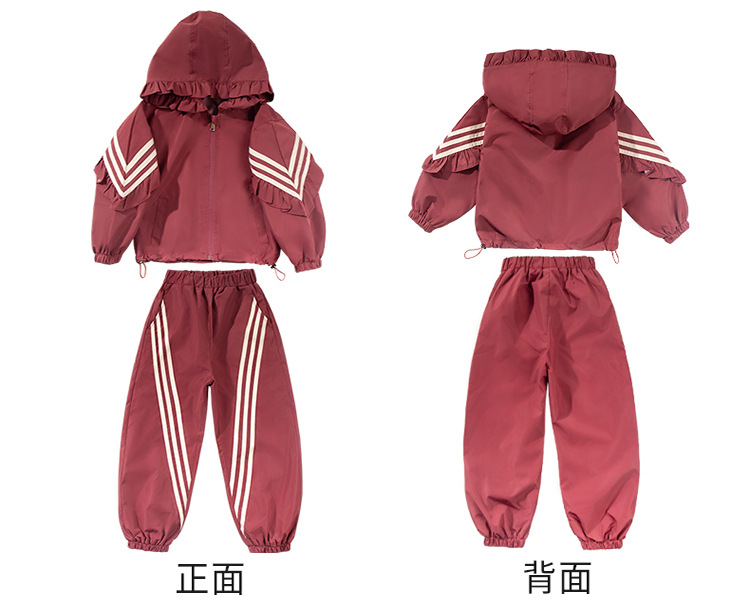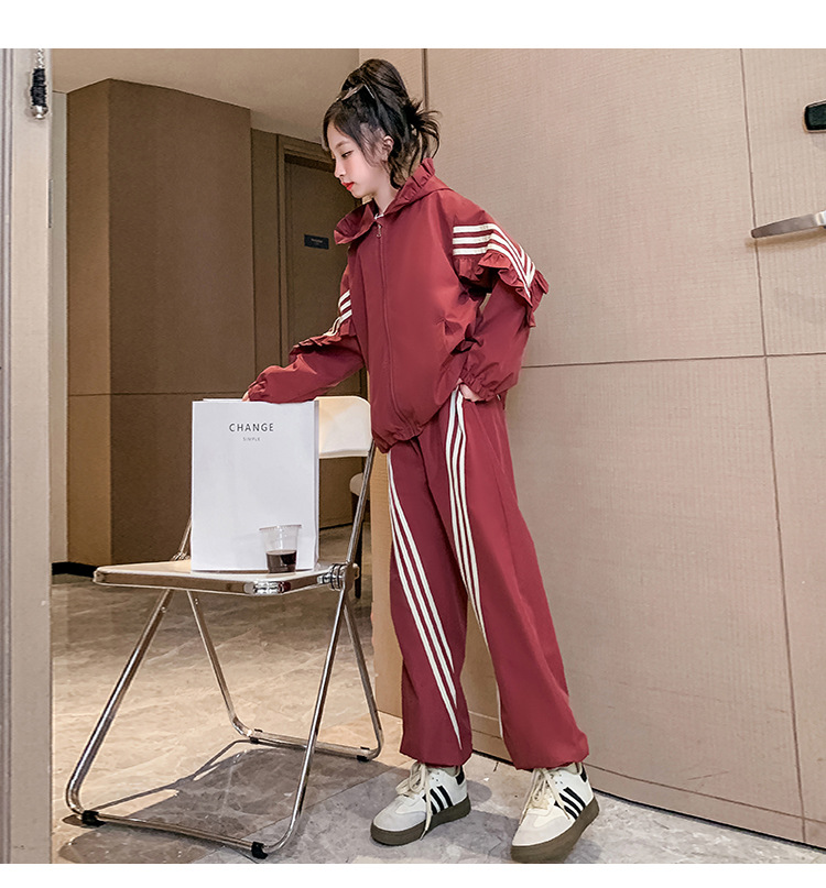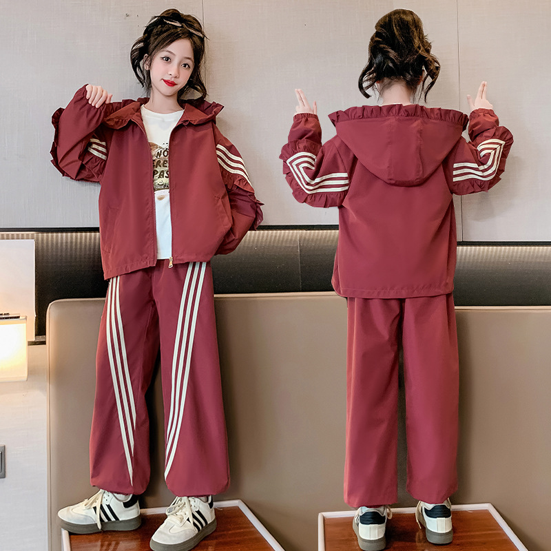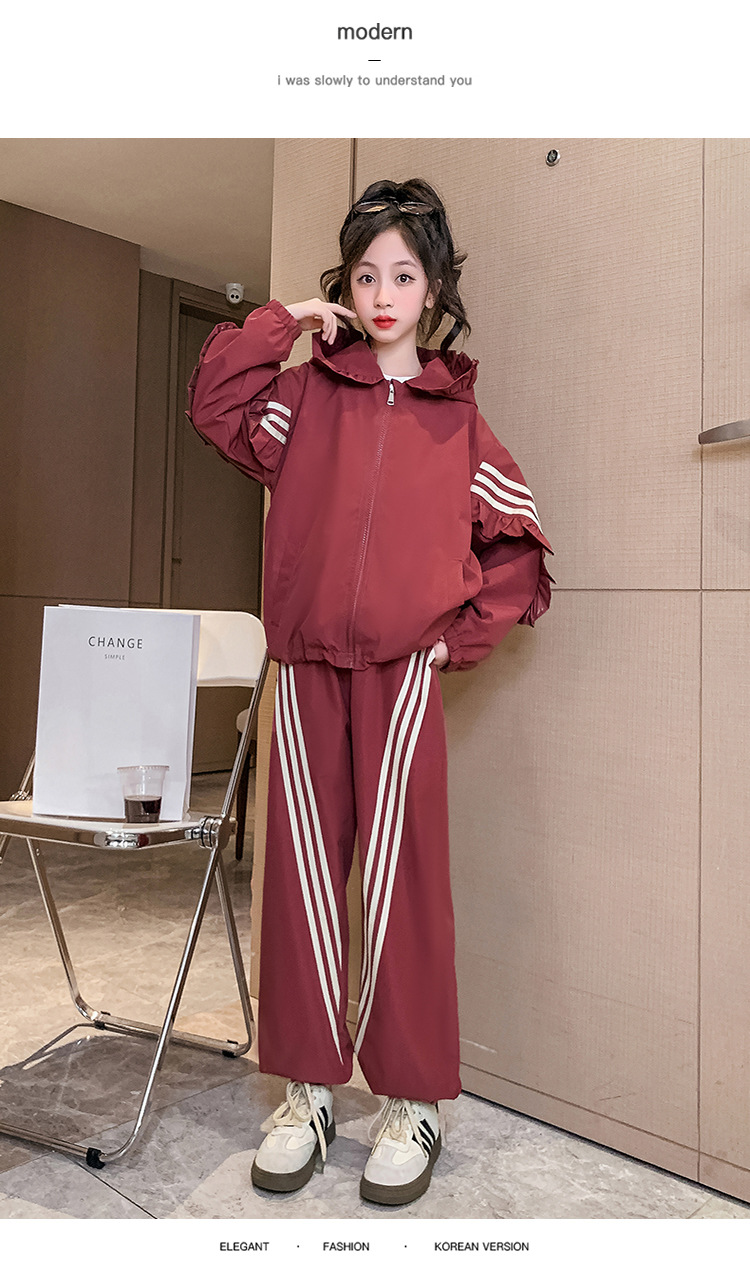 어린이 의류 소녀 나무 귀 후드 세트 가을 새로운 2024 한국식 줄무늬 투피스 스포츠 세트