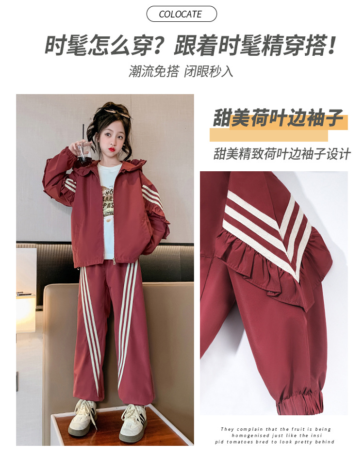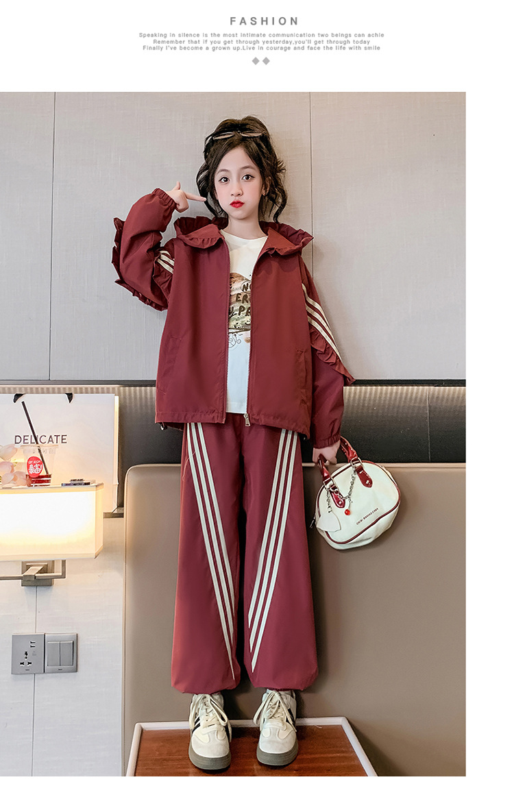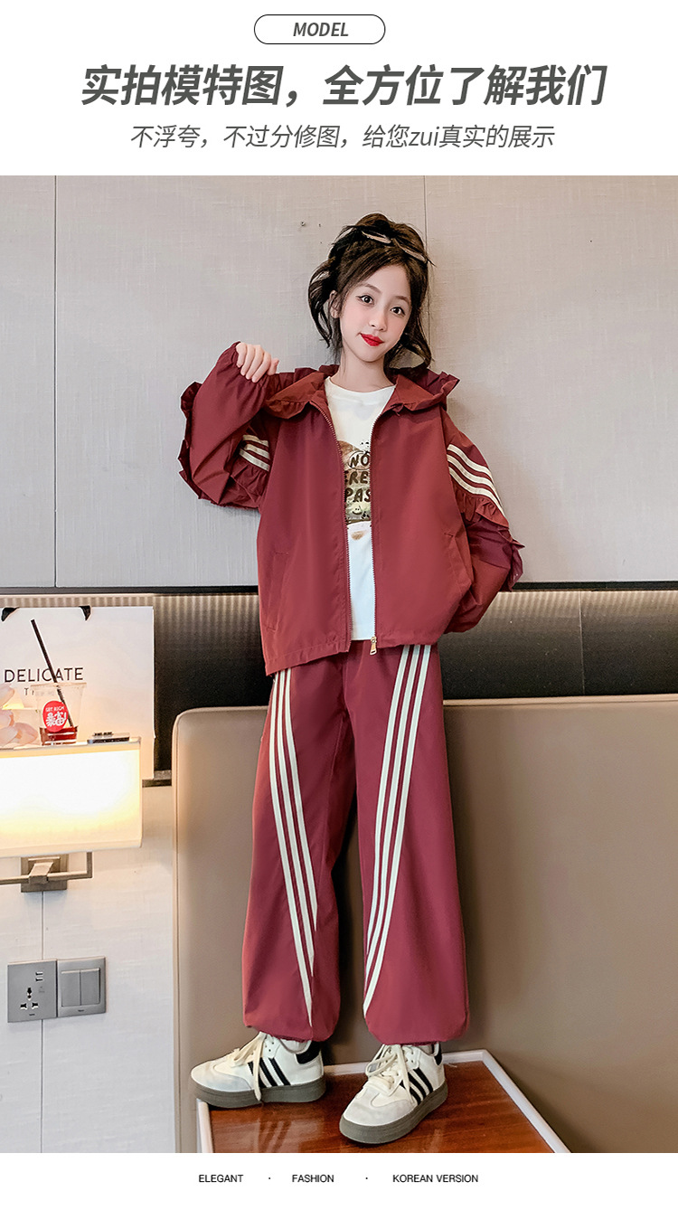 어린이 의류 소녀 나무 귀 후드 세트 가을 새로운 2024 한국식 줄무늬 투피스 스포츠 세트스토어 가기