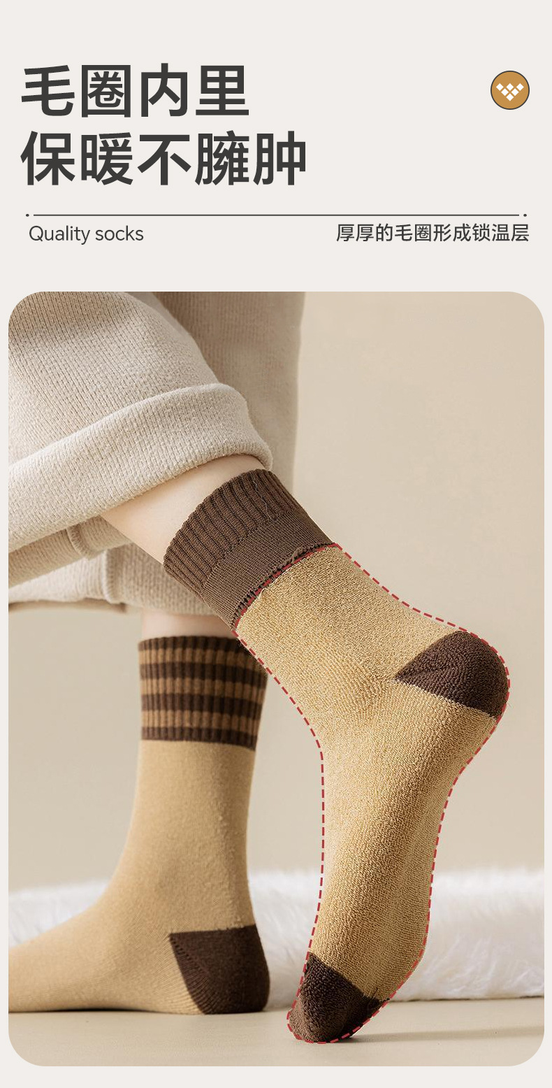 두꺼운 양말 여성의 겨울 테리 튜브 양말 기모 따뜻한 줄무늬 스포츠 탈취제 가을과 겨울 수건 긴 튜브 여성용 양말스토어 가기