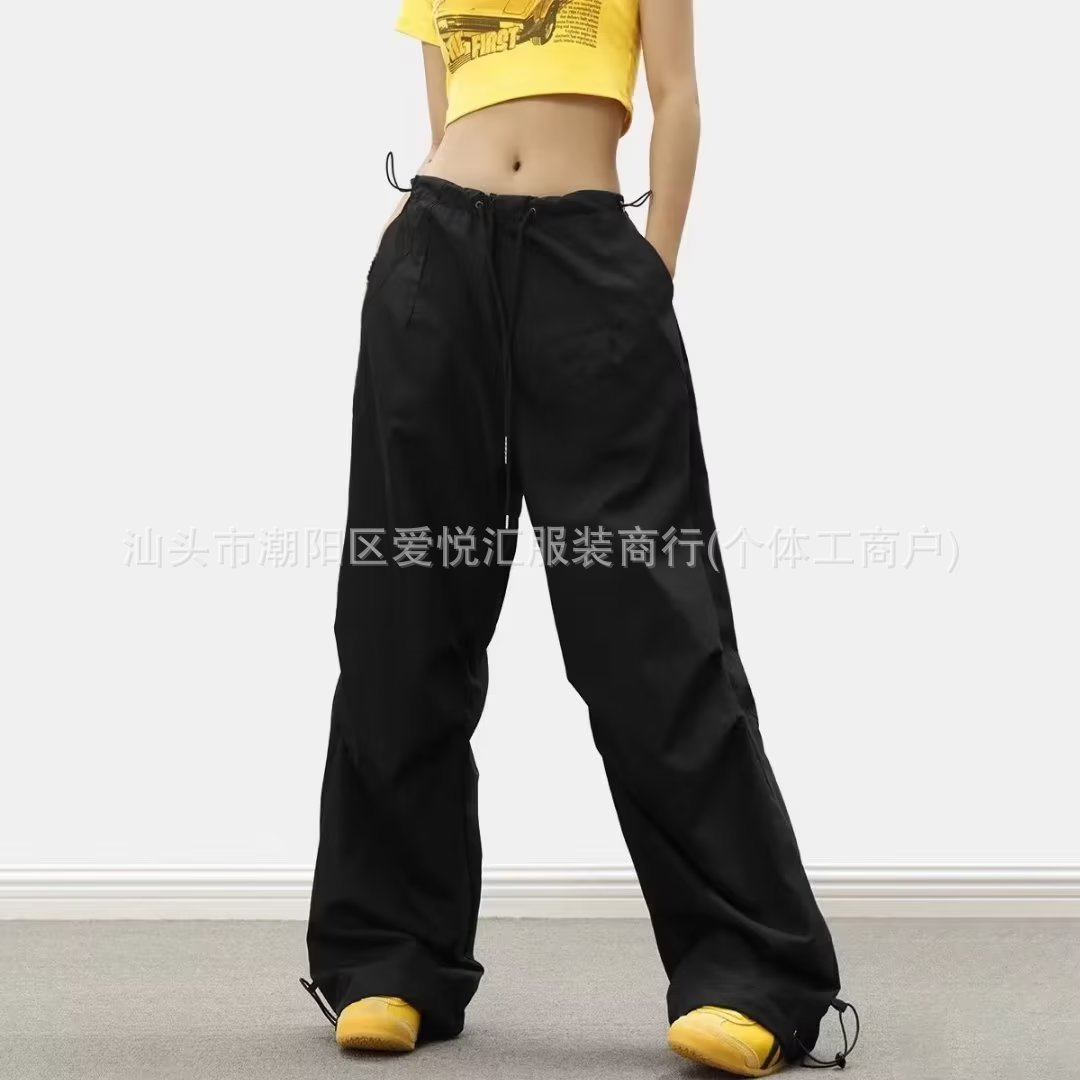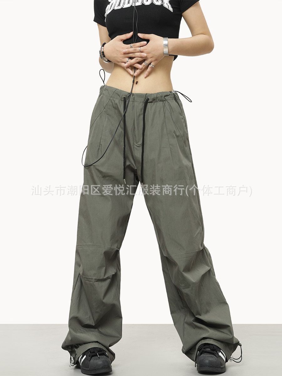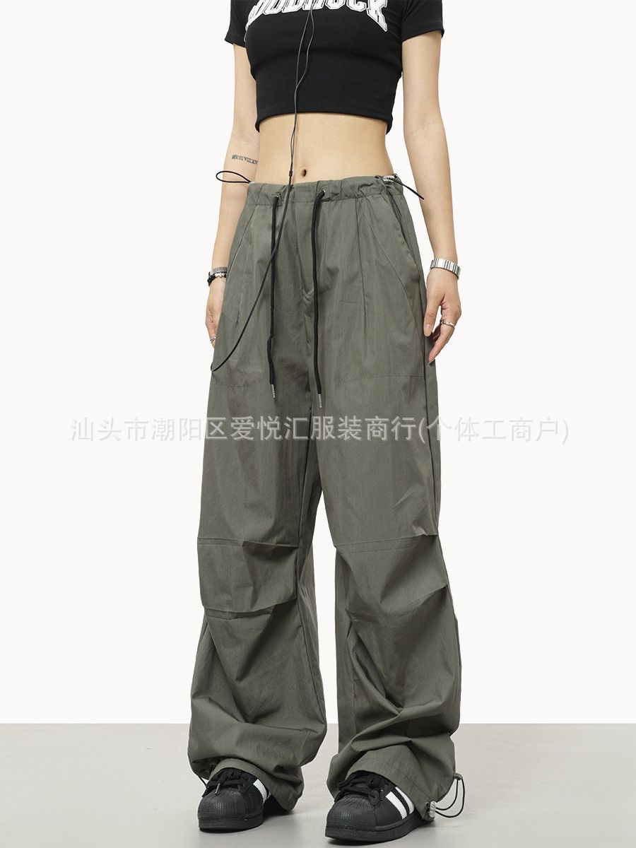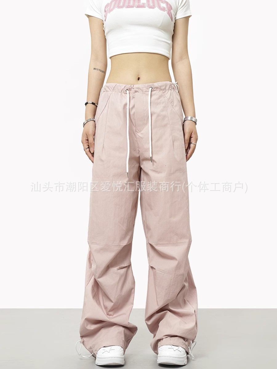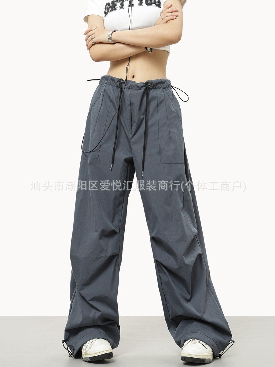 미국 스타일 와이드 레그 군중 바지 남녀 2024 여름 새로운 도착 책임 Drawstring Staggard Waist 올 매치 스포츠 캐주얼 바지