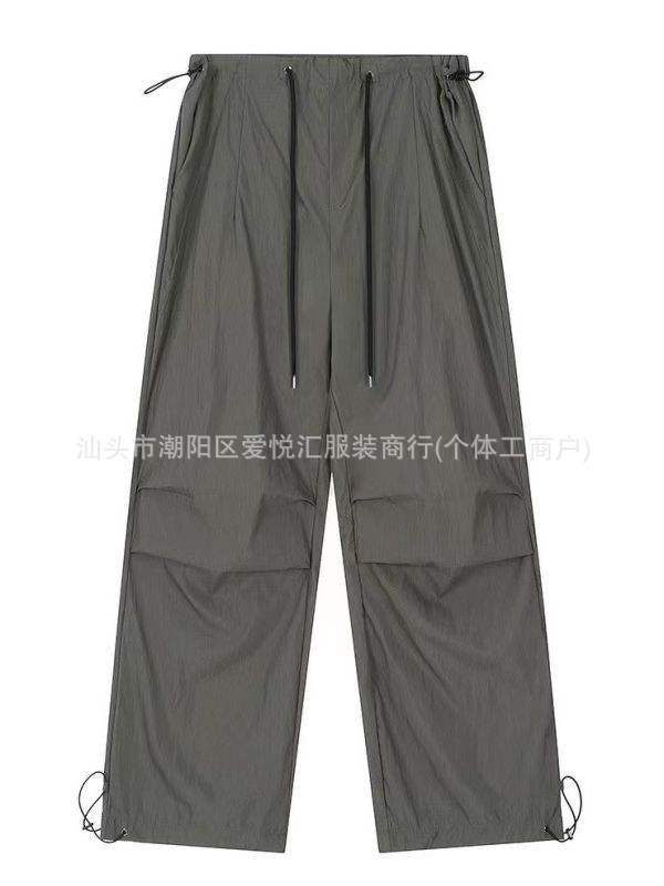 미국 스타일 와이드 레그 군중 바지 남녀 2024 여름 새로운 도착 책임 Drawstring Staggard Waist 올 매치 스포츠 캐주얼 바지스토어 가기