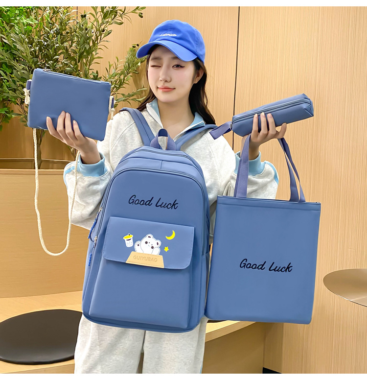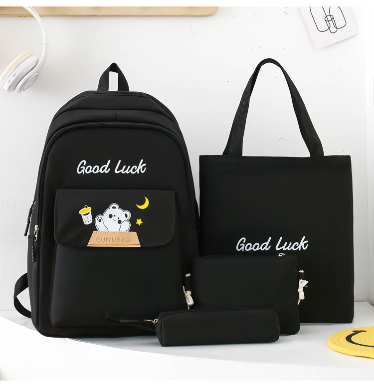 4 피스 남녀 학생 캐주얼 스쿨백 2024 새로운 패션 유행 대용량 대비 컬러 인쇄 배낭