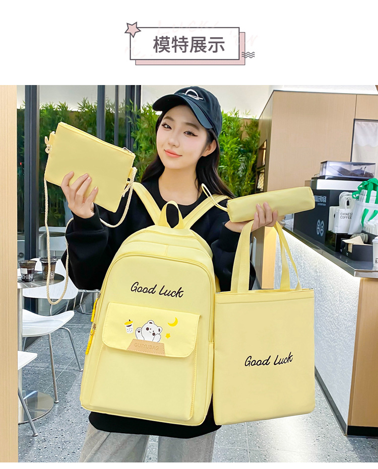 4 피스 남녀 학생 캐주얼 스쿨백 2024 새로운 패션 유행 대용량 대비 컬러 인쇄 배낭스토어 가기