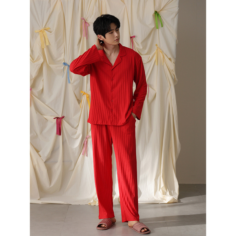 봄과 가을 커플 잠옷 여성의 2024 새로운 면 카디건 긴 소매 느슨한 줄무늬 남성용 의류