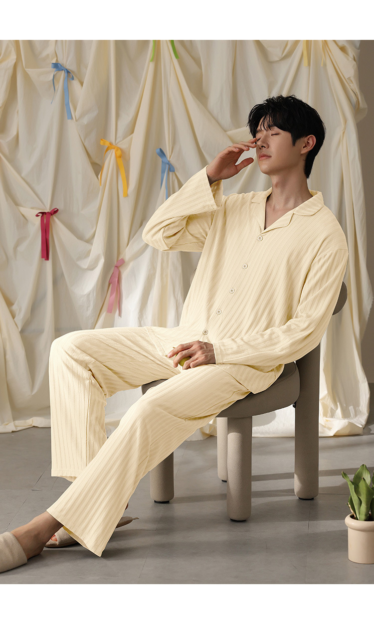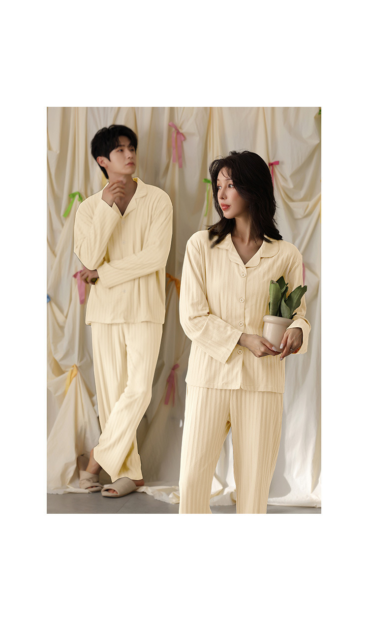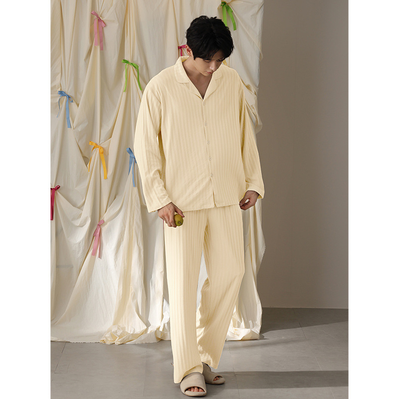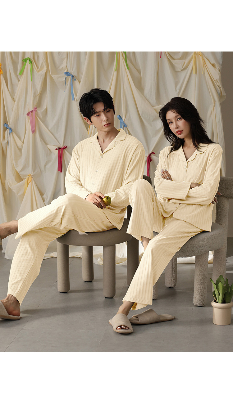 봄과 가을 커플 잠옷 여성의 2024 새로운 면 카디건 긴 소매 느슨한 줄무늬 남성용 의류스토어 가기