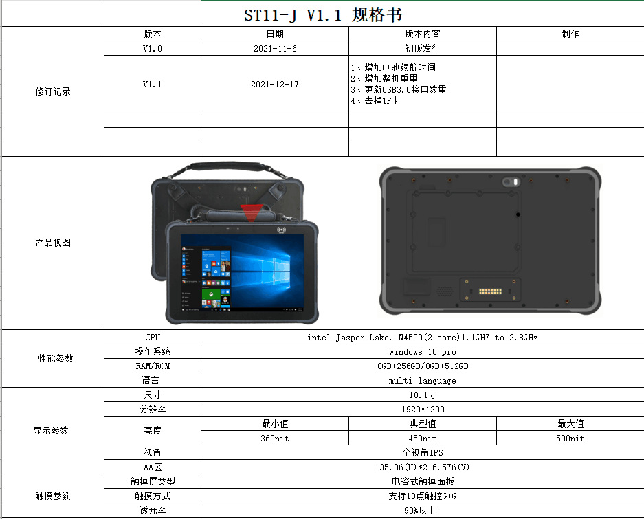 Xingu ST11 산업용 삼중 보호 태블릿 컴퓨터 4G 네트워크 강화 윈도우 태블릿 컴퓨터