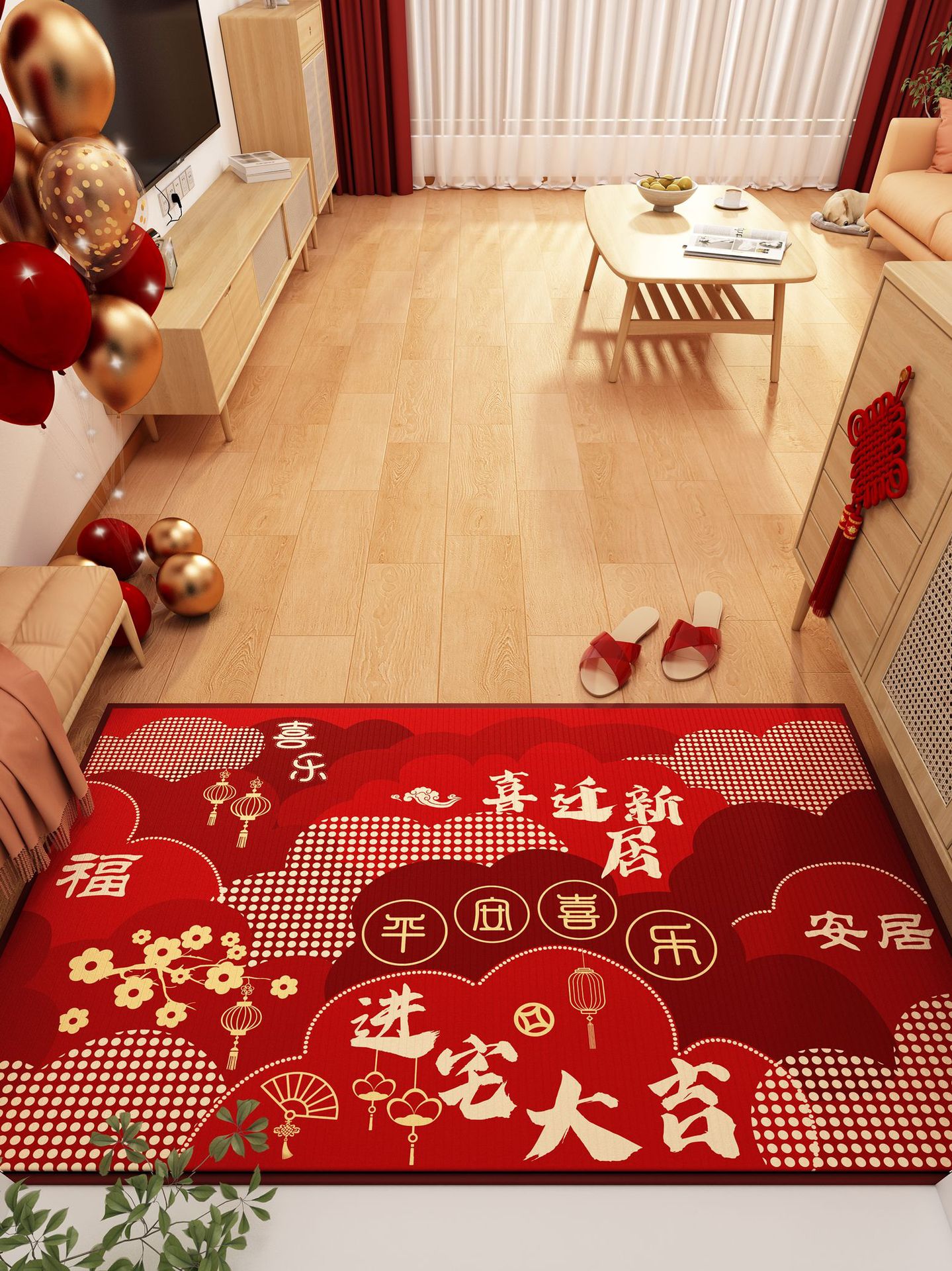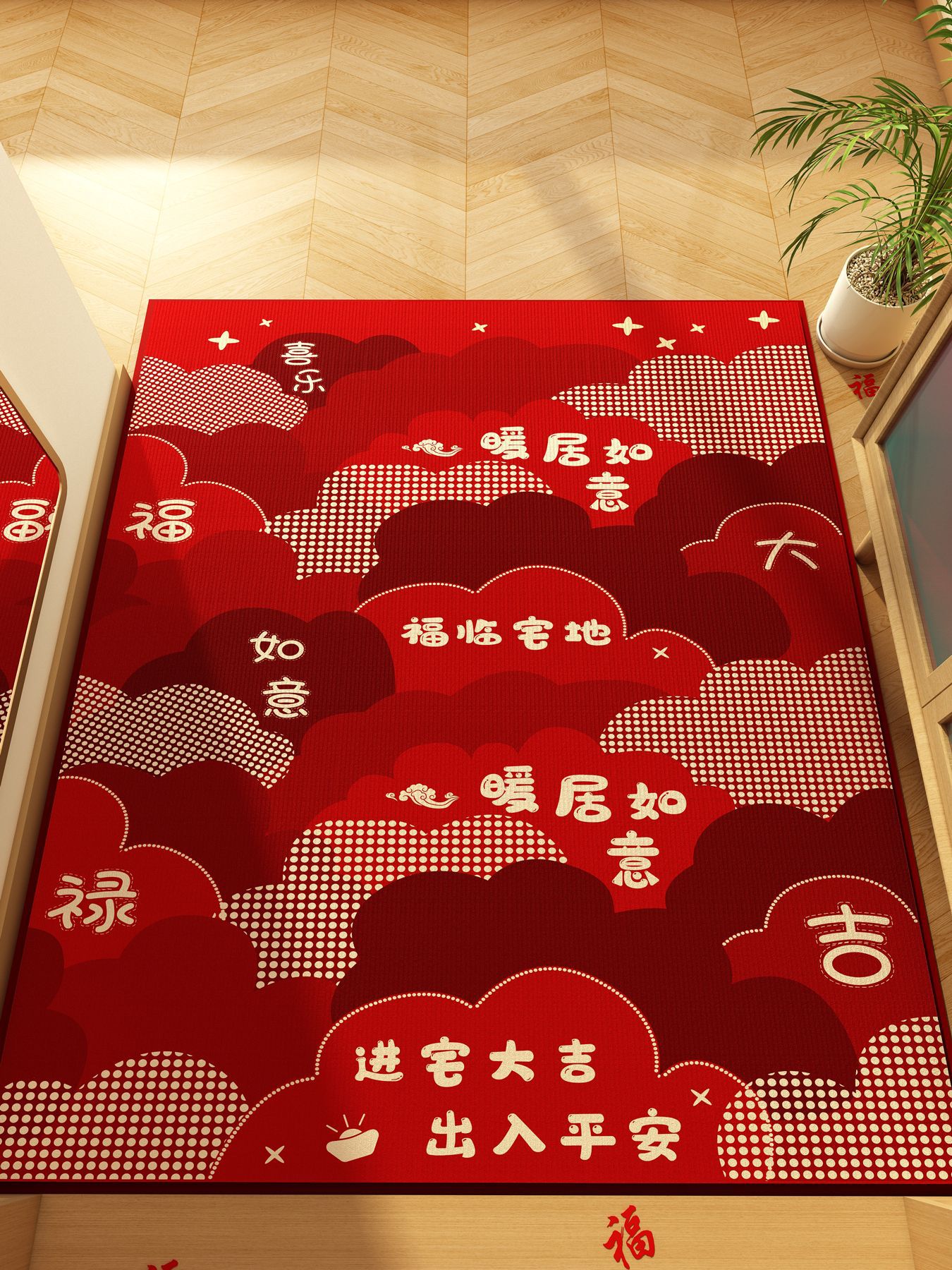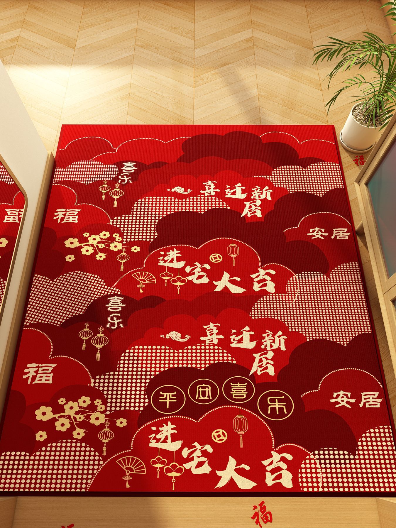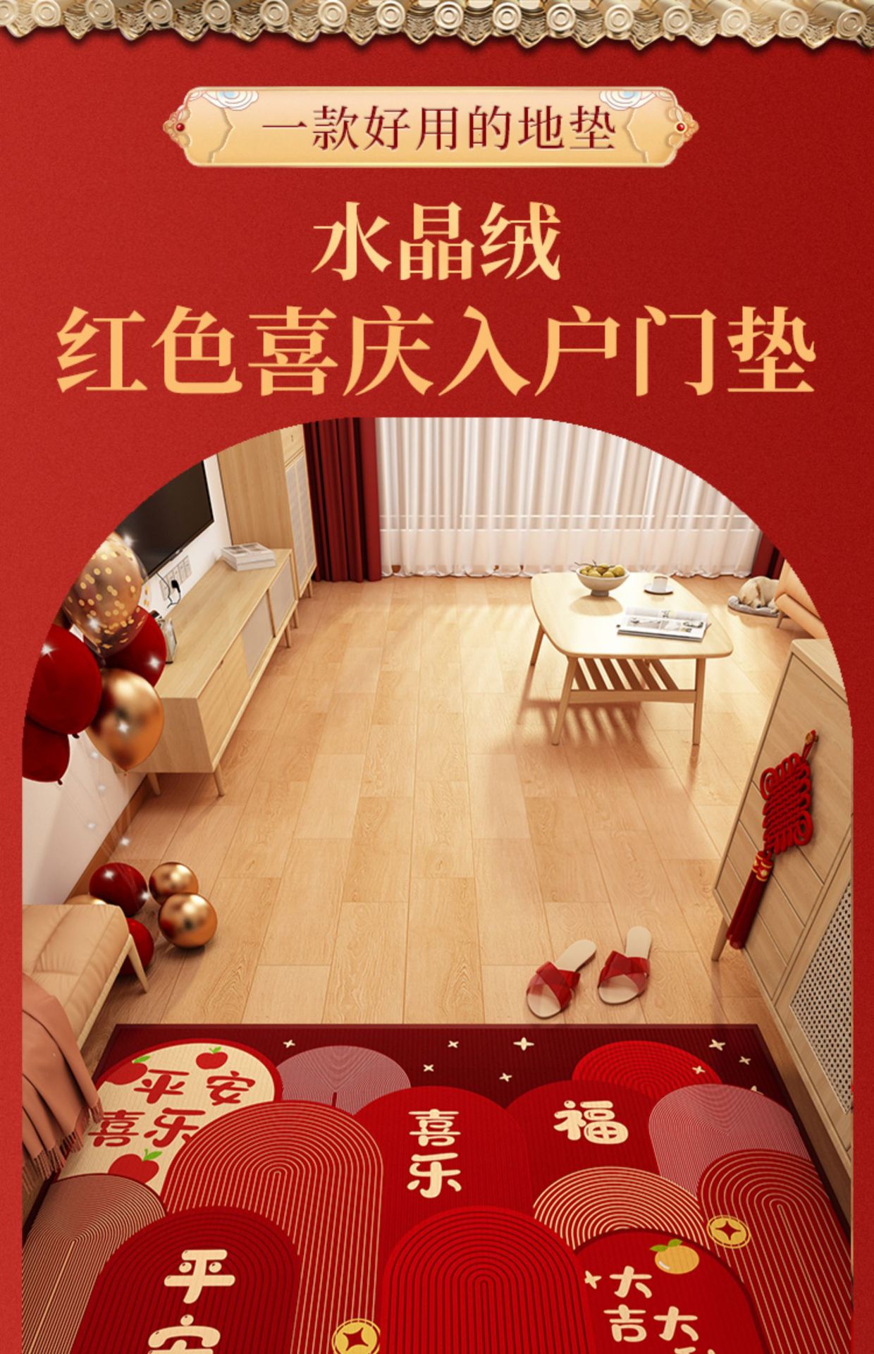 가정용 현관 매트, 이사 시 간편하게 설치, 크리스탈 벨벳 소재의 부드러운 발매트, 빨간색 축제용 현관 매트, 오염 방지 현관 매트