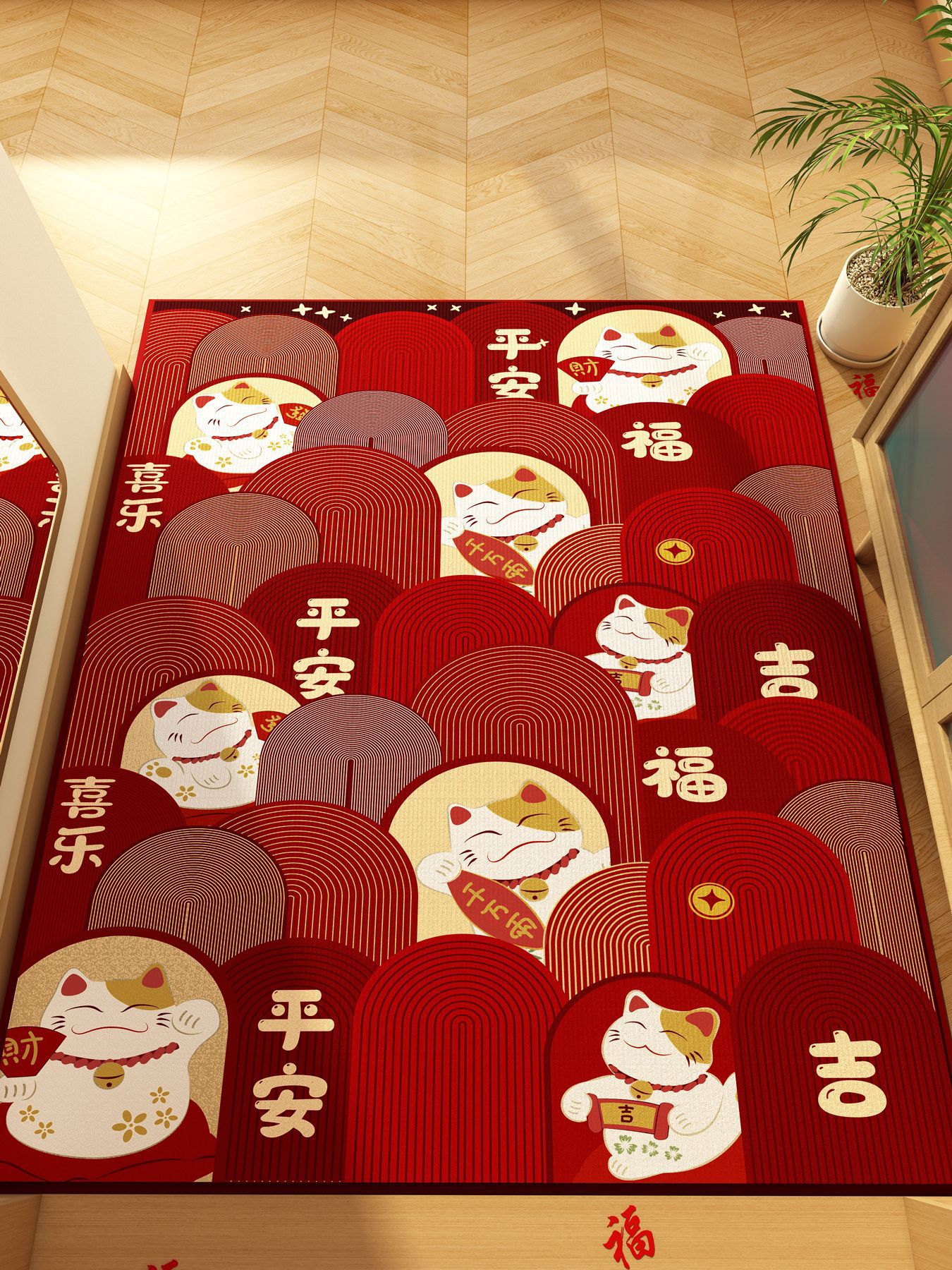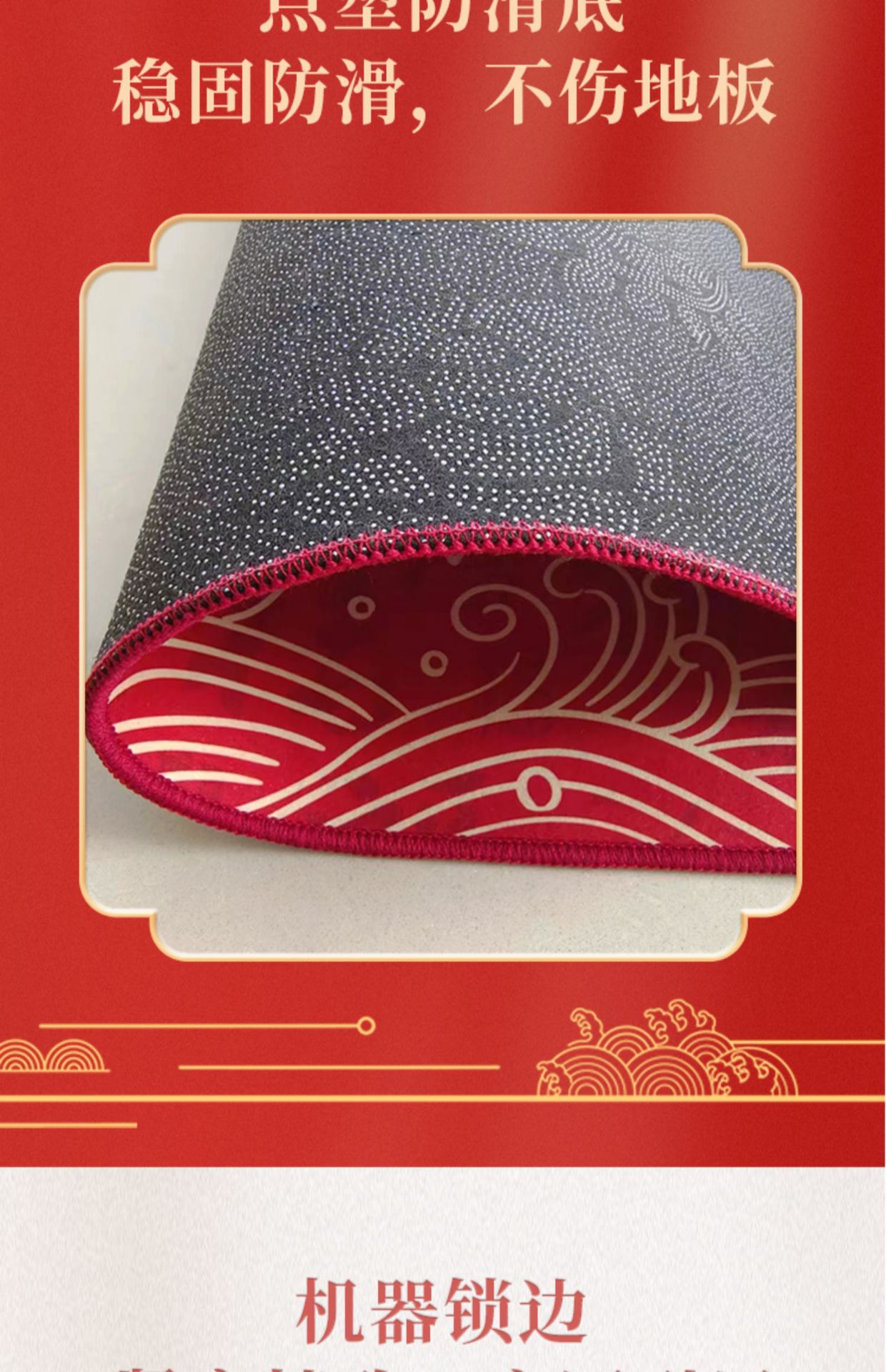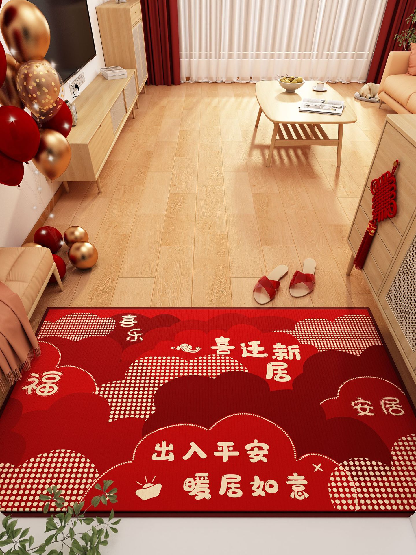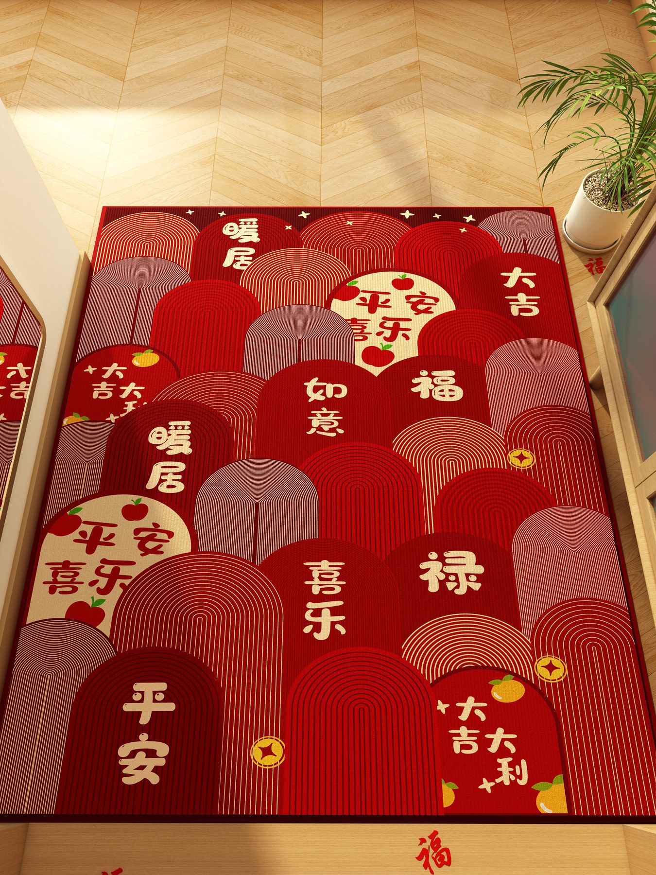 가정용 현관 매트, 이사 시 간편하게 설치, 크리스탈 벨벳 소재의 부드러운 발매트, 빨간색 축제용 현관 매트, 오염 방지 현관 매트