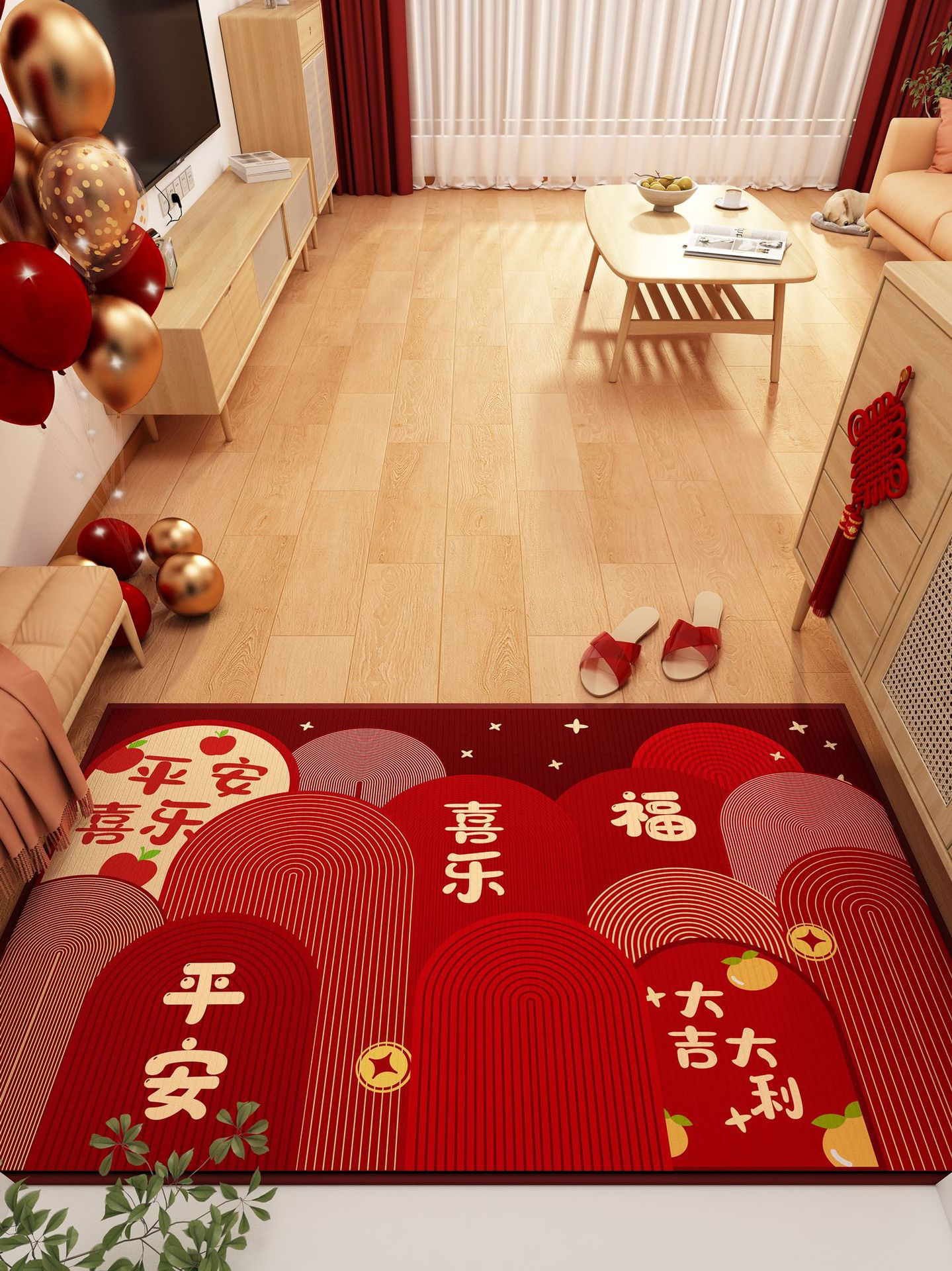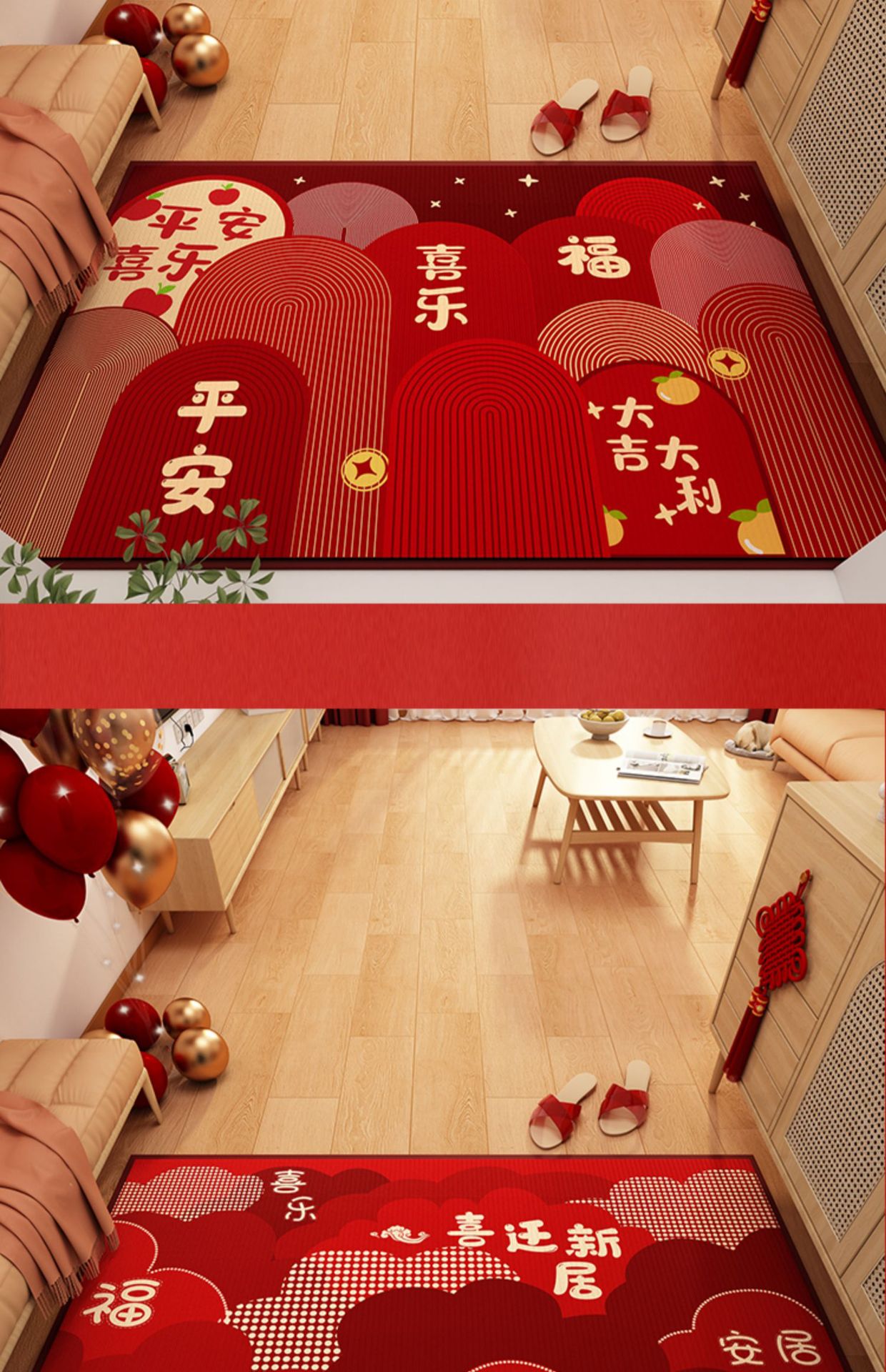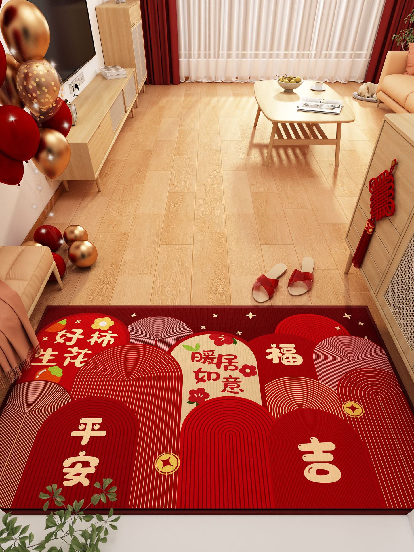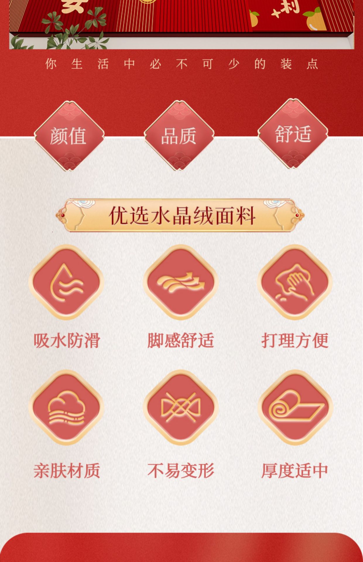 가정용 현관 매트, 이사 시 간편하게 설치, 크리스탈 벨벳 소재의 부드러운 발매트, 빨간색 축제용 현관 매트, 오염 방지 현관 매트