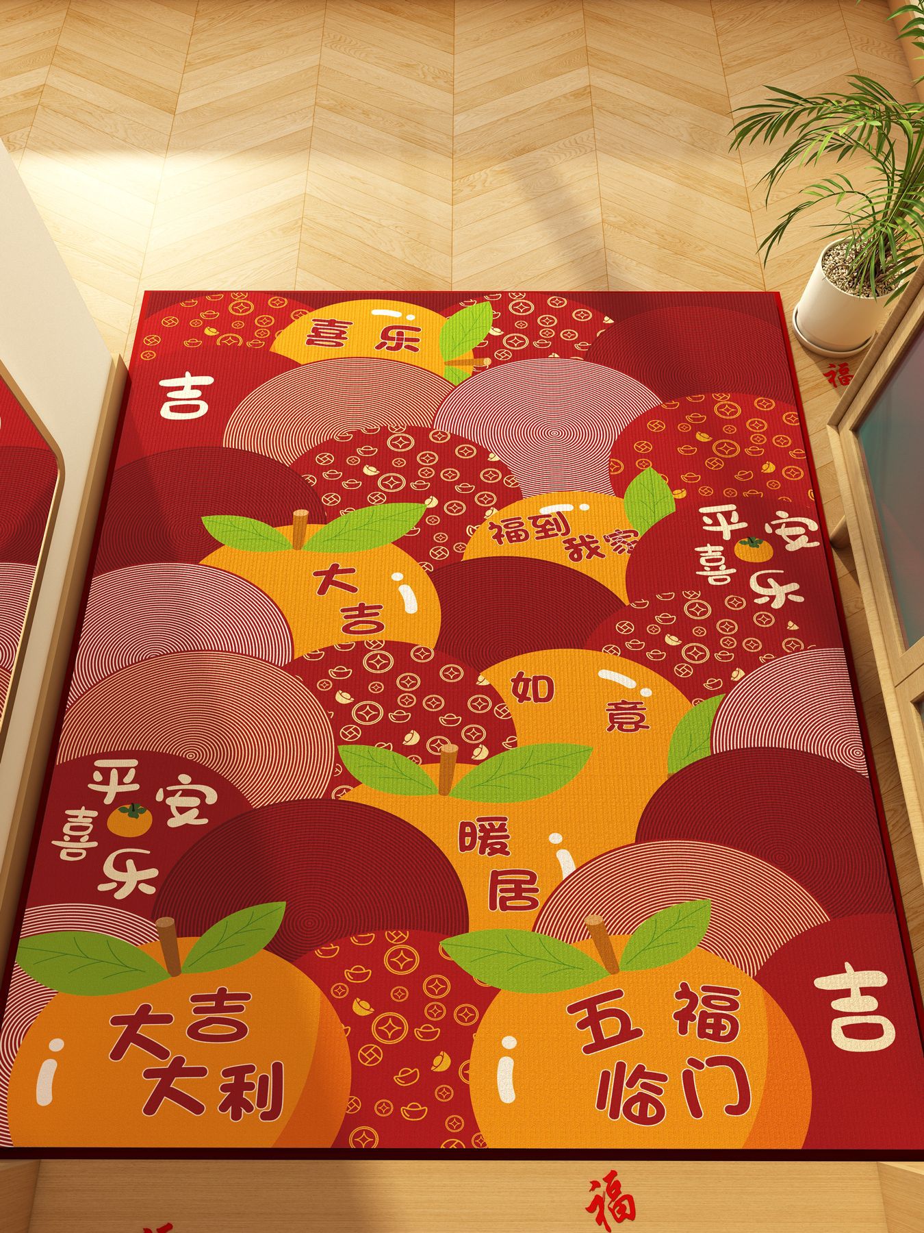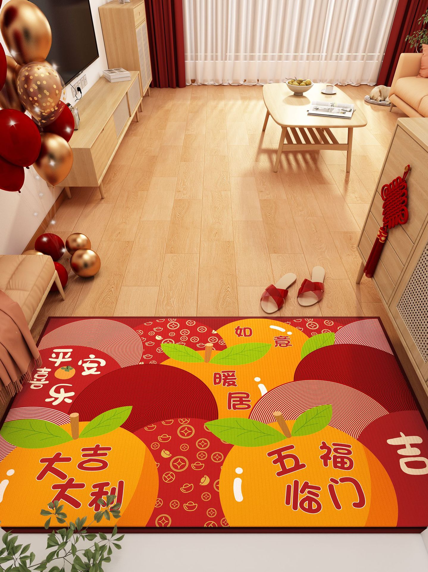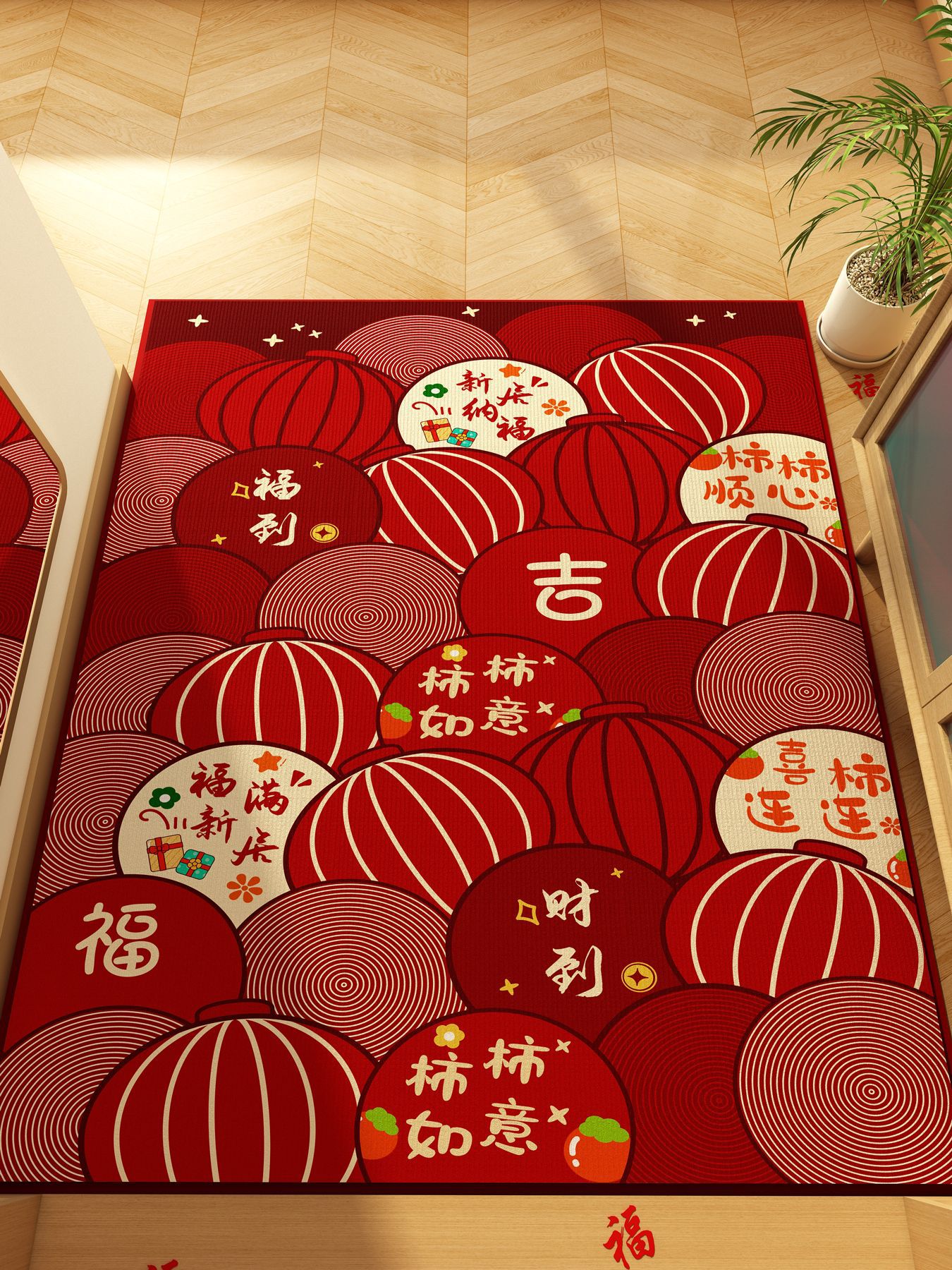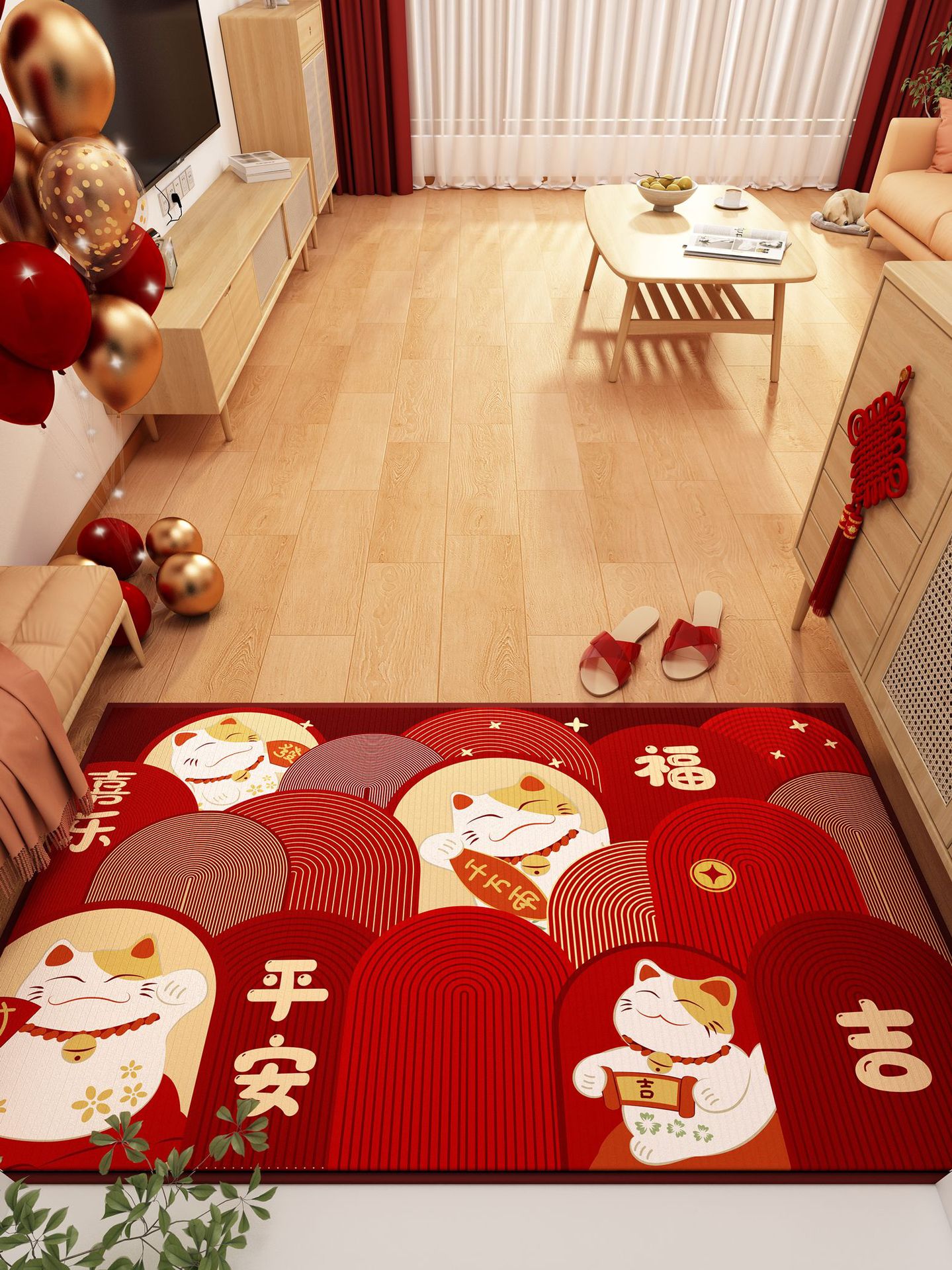 가정용 현관 매트, 이사 시 간편하게 설치, 크리스탈 벨벳 소재의 부드러운 발매트, 빨간색 축제용 현관 매트, 오염 방지 현관 매트