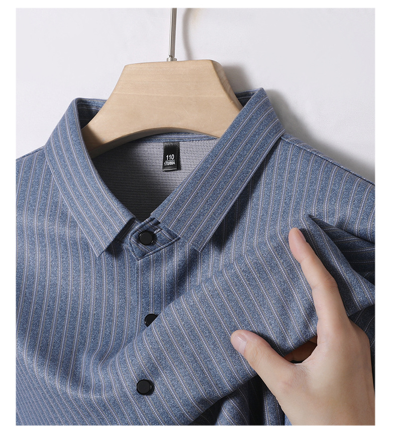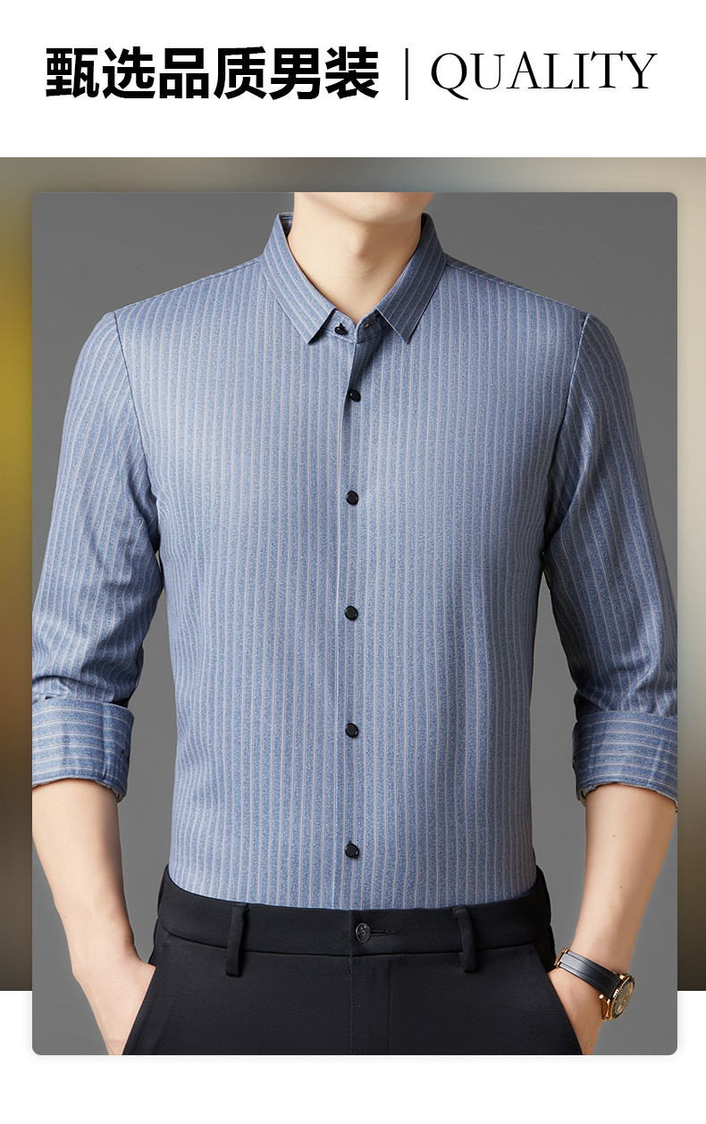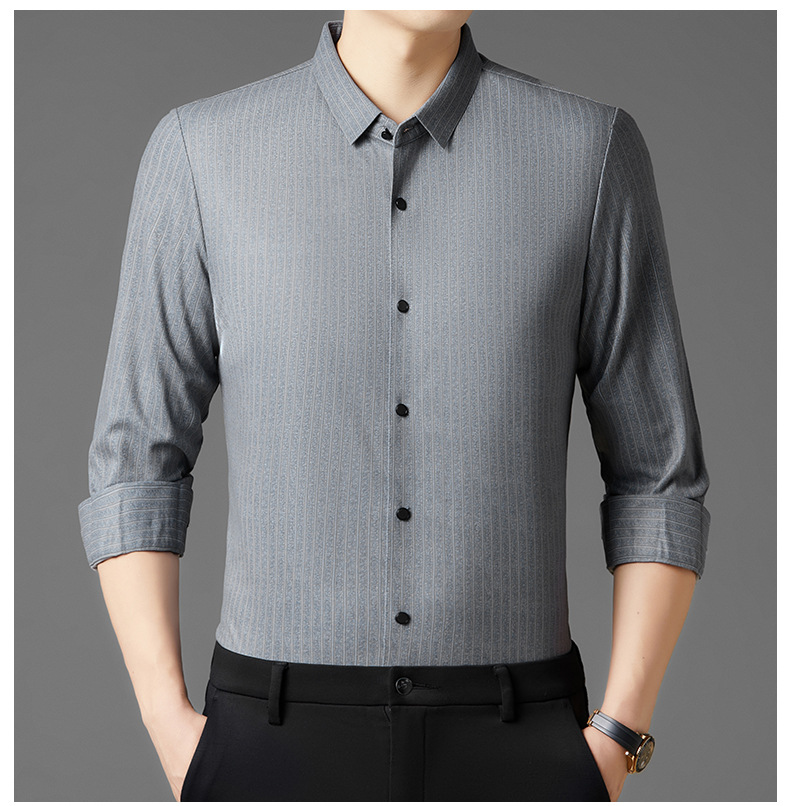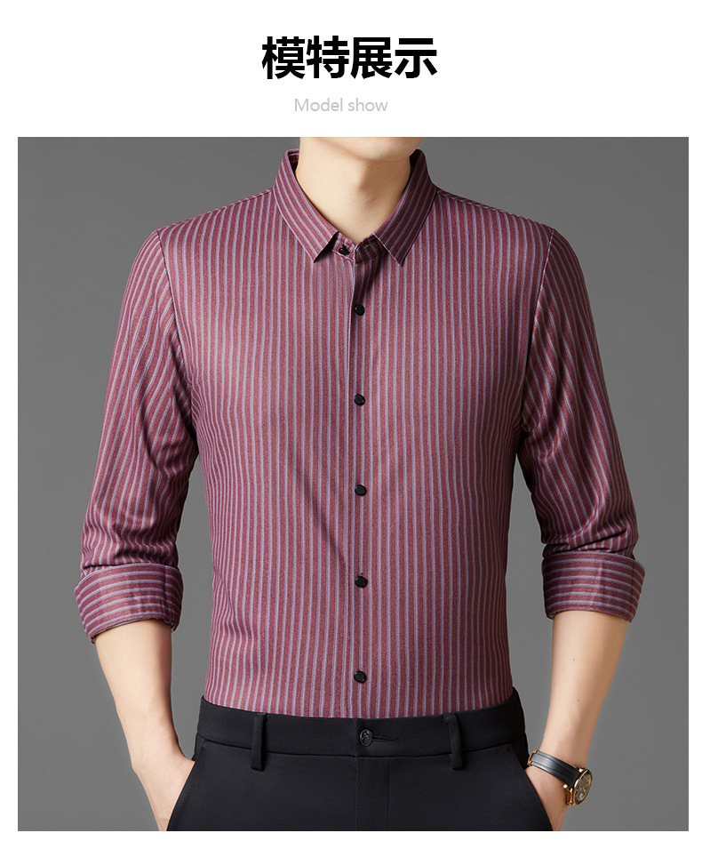 봄과 가을 새로운 긴 소매 줄무늬 셔츠 남성 패션 비즈니스 캐주얼 패션 피부 친화적 인 소프트 왁스 젊고 중년 아빠 셔츠