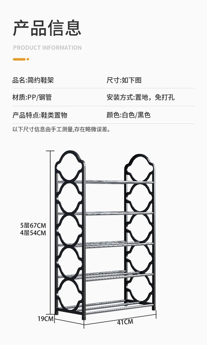 레이스 신발 랙 가정용 바닥 간단한 조립 신발 랙 다층 저장 랙 기숙사 공간 절약 작은 신발 캐비닛