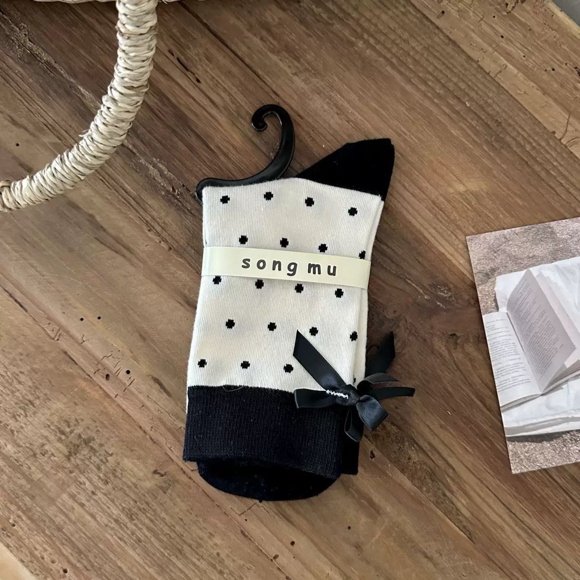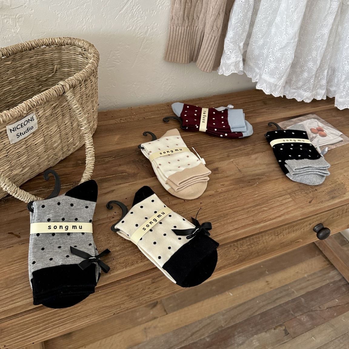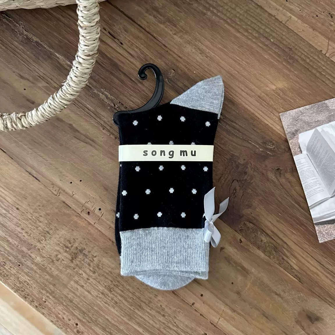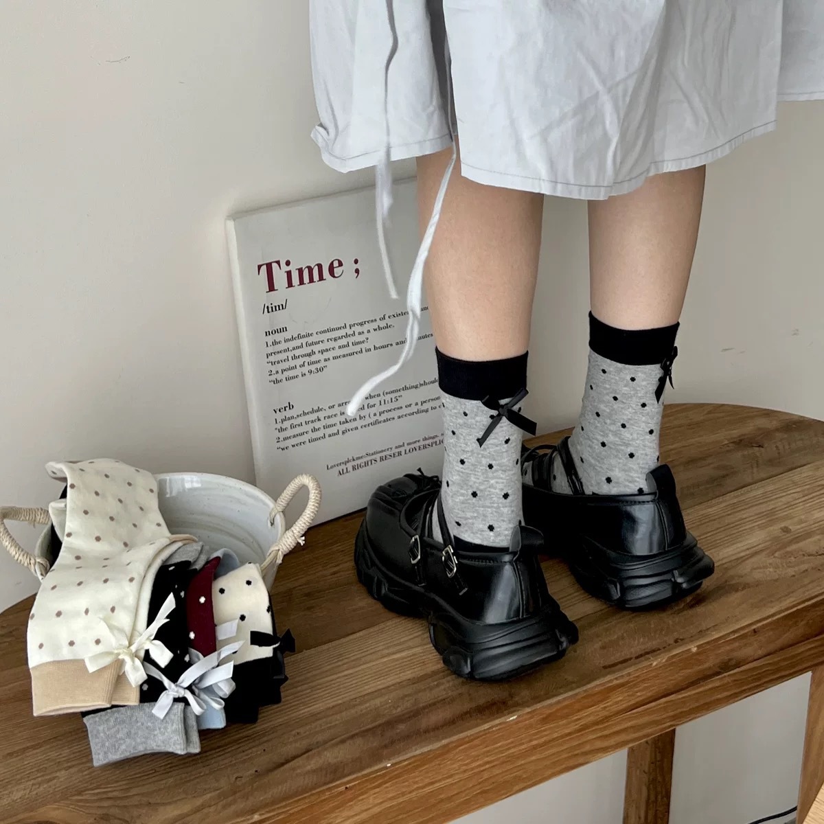 Ankora Red Wave Dot 스태킹 양말 어린이 봄과 가을 활 미드 튜브 면 양말 일본 캐주얼 올 매치 학생 양말스토어 가기