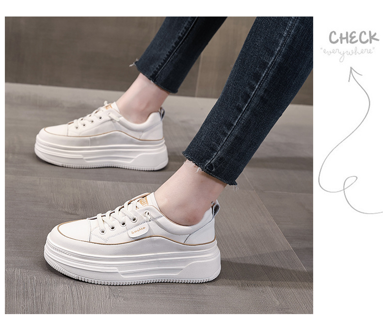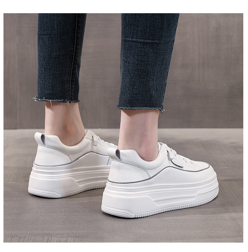 정품 가죽 흰색 신발 여성의 2024 새로운 가을 폭발 정품 가죽 두꺼운 플랫 여성 신발 올 매치 통기성 신발스토어 가기