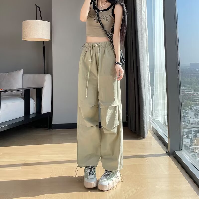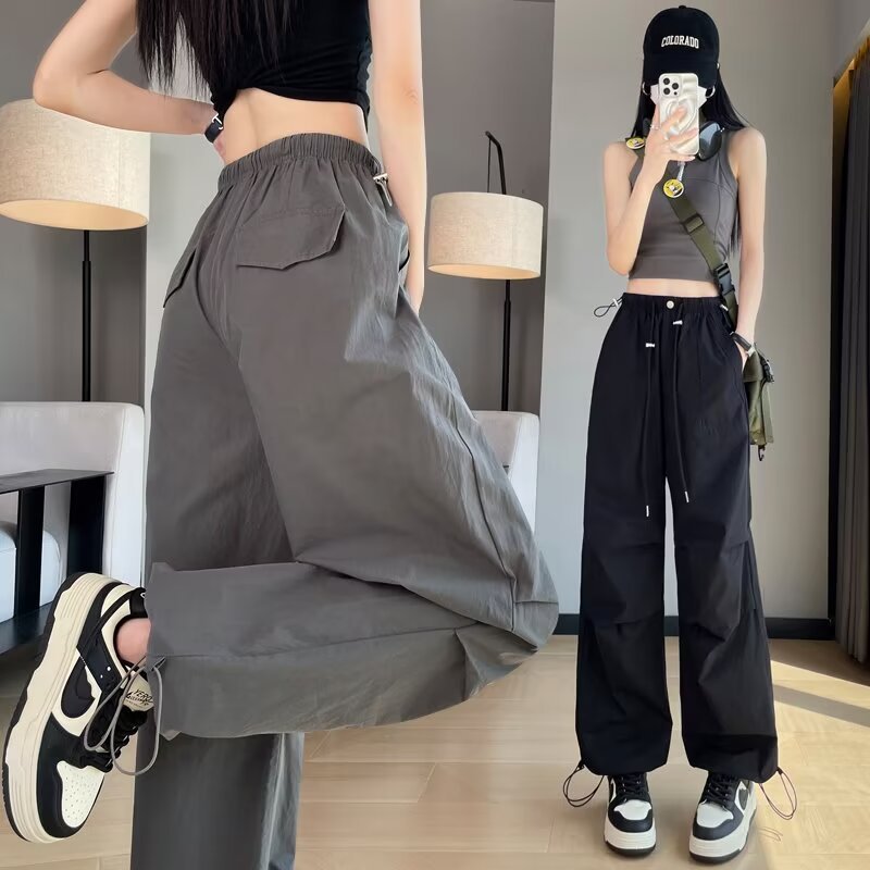 미국 스타일의 빠른 건조 오버볼 여성 여름 얇은 높은 허리 슬리밍 느슨한 다리 캐주얼 와이드 레그 팬츠 간단하고 트렌디 한스토어 가기