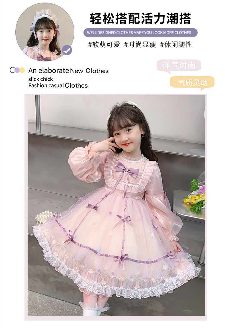 2024 새로운 로리타 소녀 가을 로리타 드레스 로리타 소형, 중형 및 대형 아동 의류 달콤한 공주 드레스