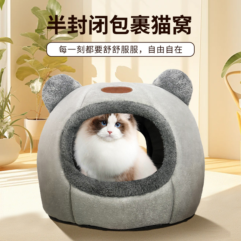 국경 간 라벨링 및 배송 공장 신제품 이중 구멍 통과형 고양이 집 곰귀 고양이 집 이중 구멍 고양이 집 가을 겨울 보온스토어 가기