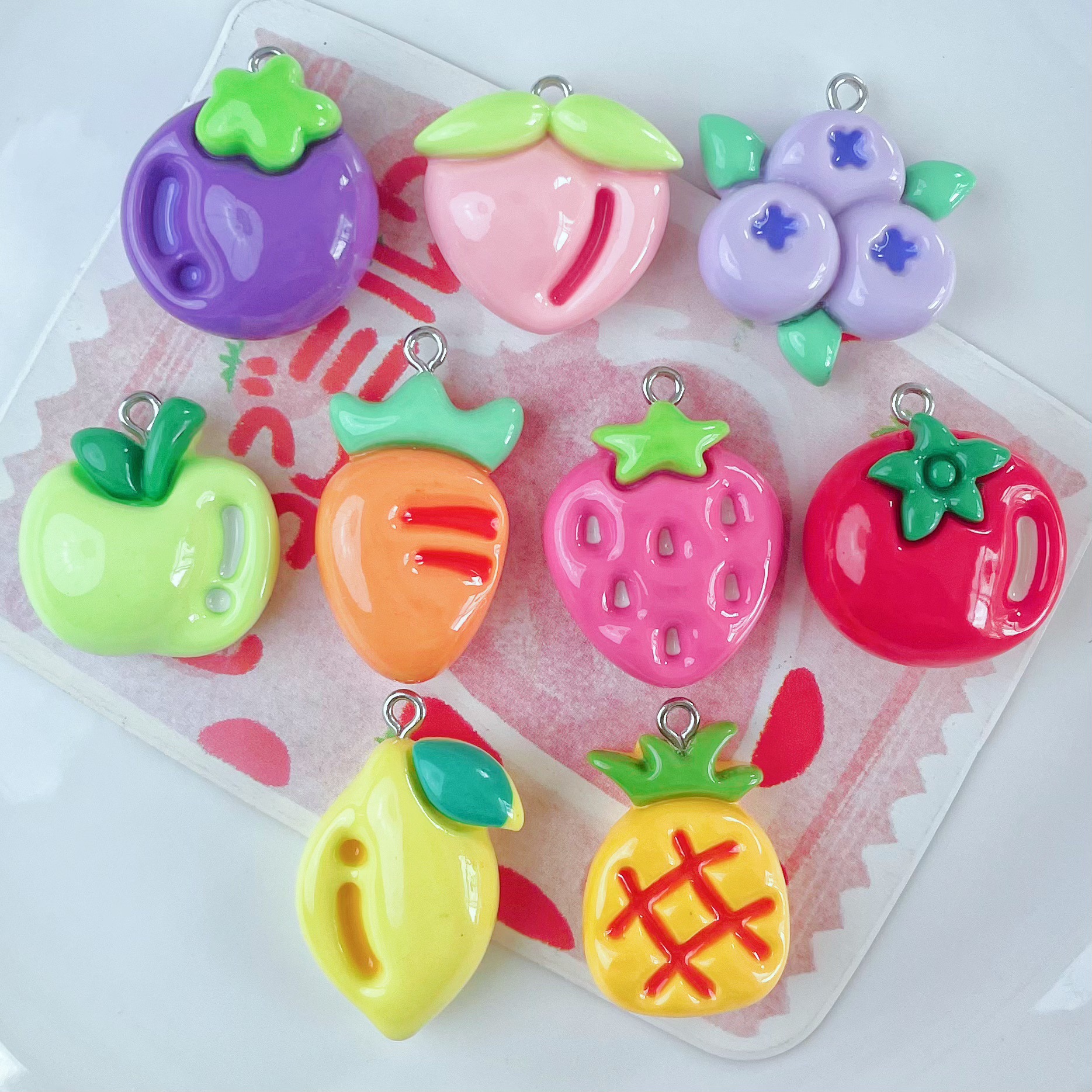 드롭 오일 여름 과일 및 야채 시리즈 펜던트 시뮬레이션 과일 DIY 보석 펜던트 키 체인 소재 배치