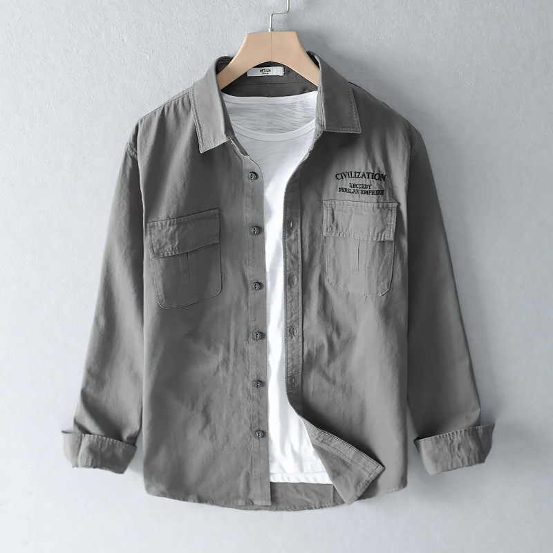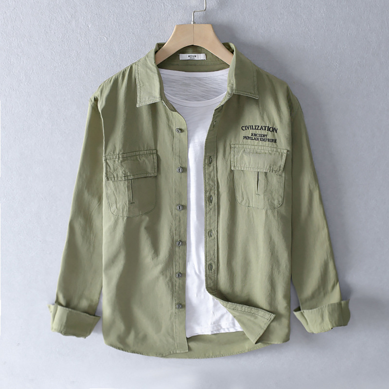 빈티지 작업복 긴팔 셔츠 남자의 가을 일본 스타일 캐주얼 플러스 사이즈 청소년 예술적 느슨한 셔츠 남성 자켓