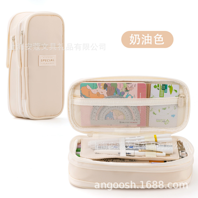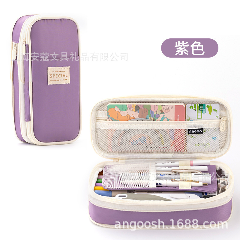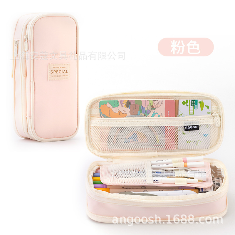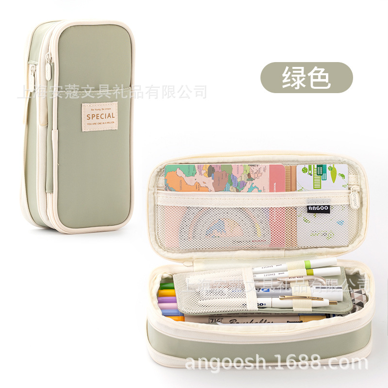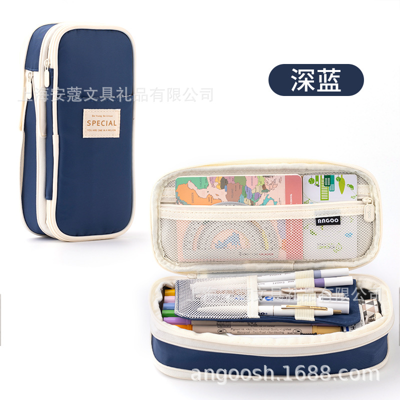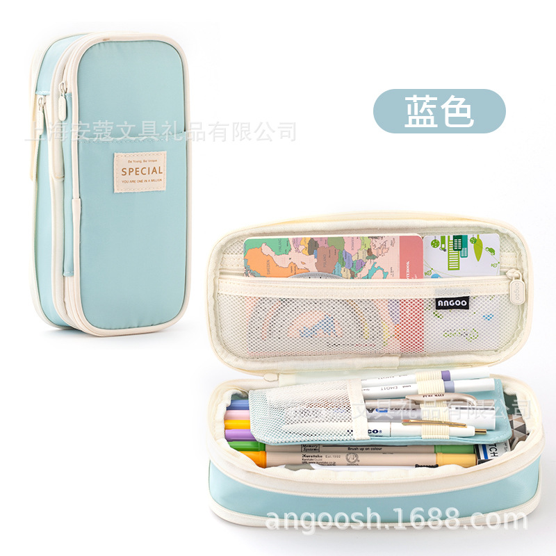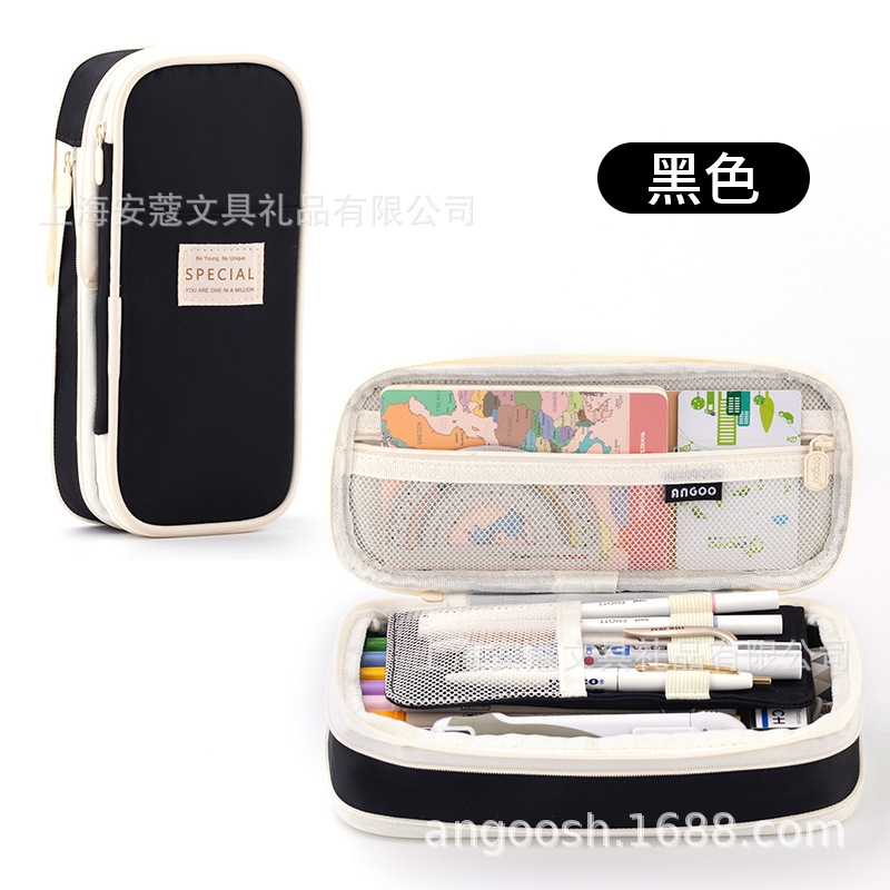 Anko Angoo 더블 레이어 연필 가방 남성 고등학교 학생 문구 가방 대용량 연필 가방 여성 간단한 다기능 연필 케이스스토어 가기