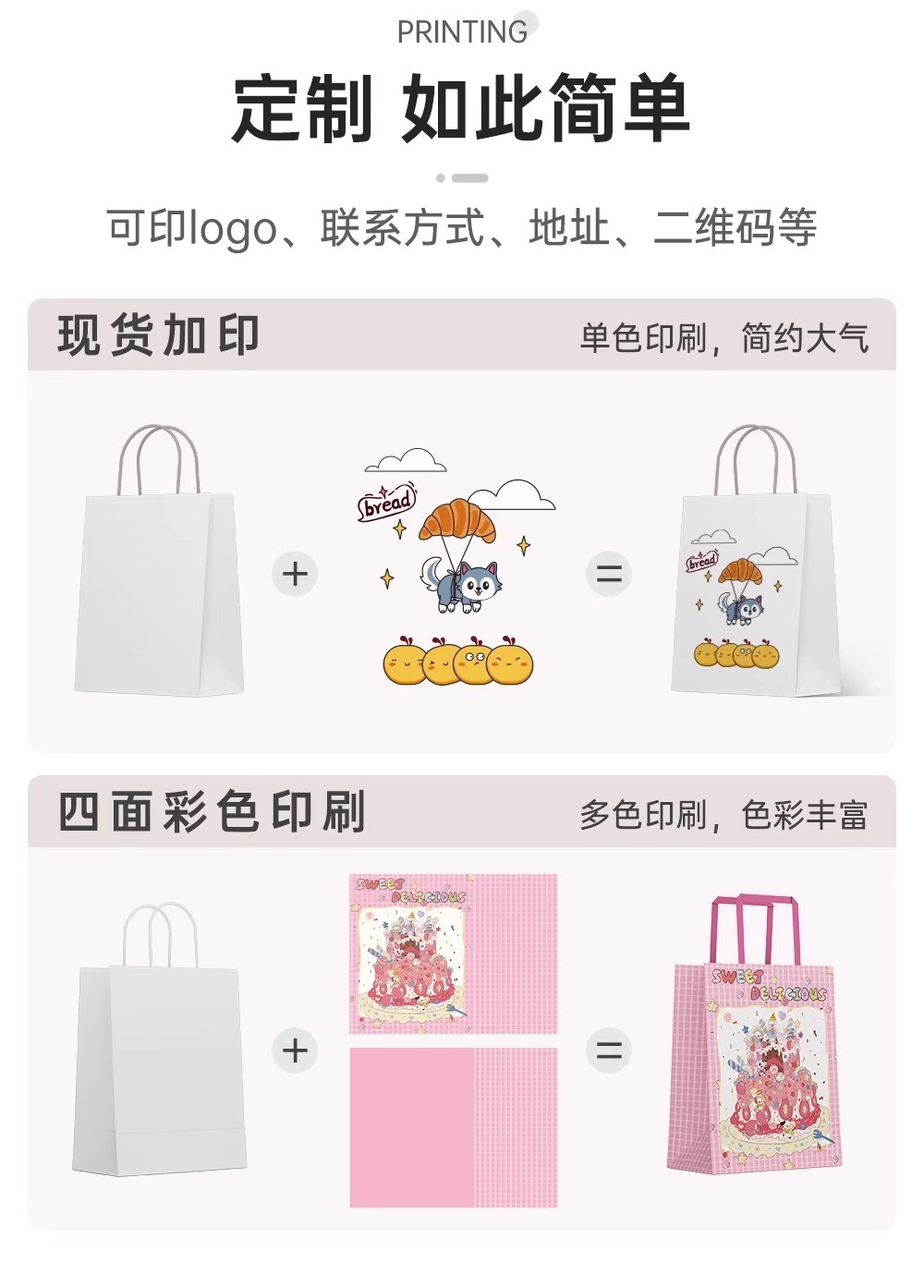 크래프트 종이 가방 선물 가방 선물 가방 어린이 포장 핸드백 아침 식사 커피 우유 차 테이크 아웃 포장 가방