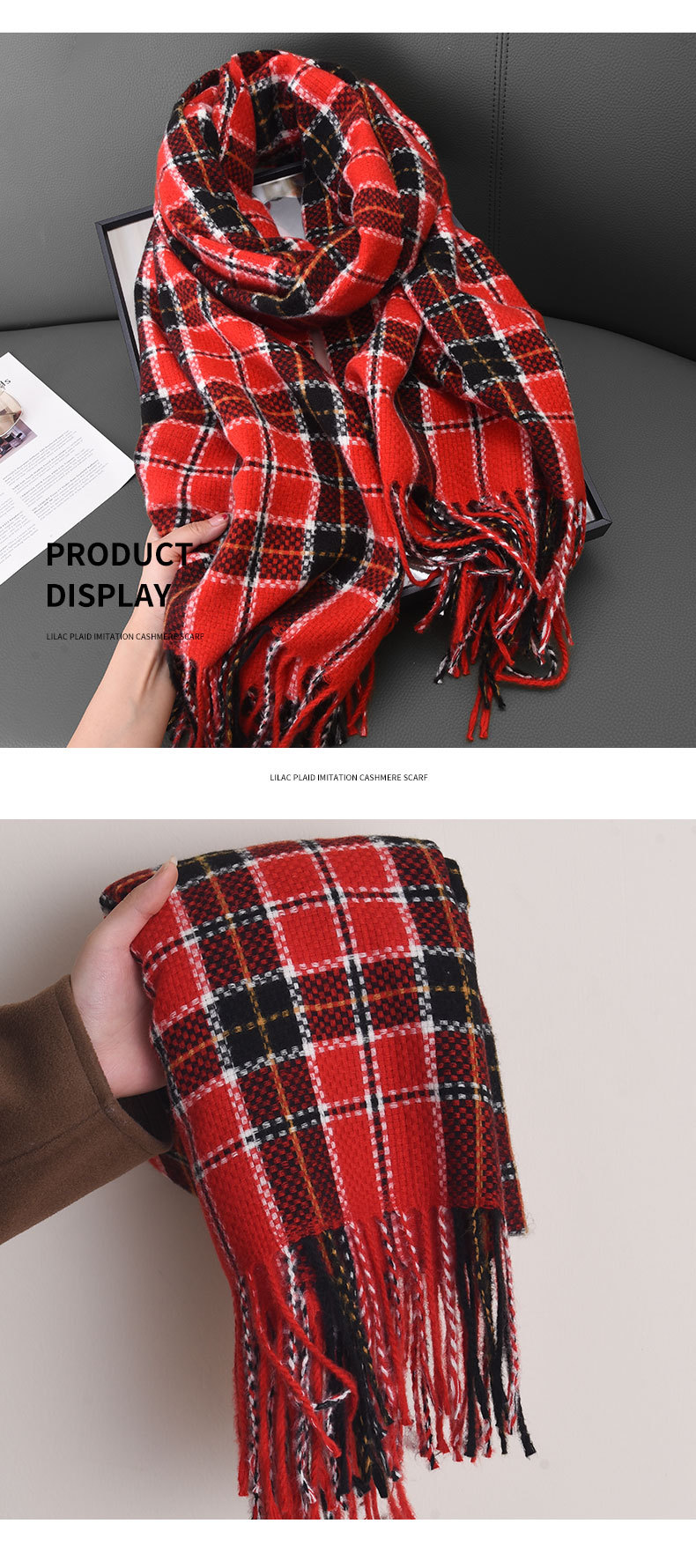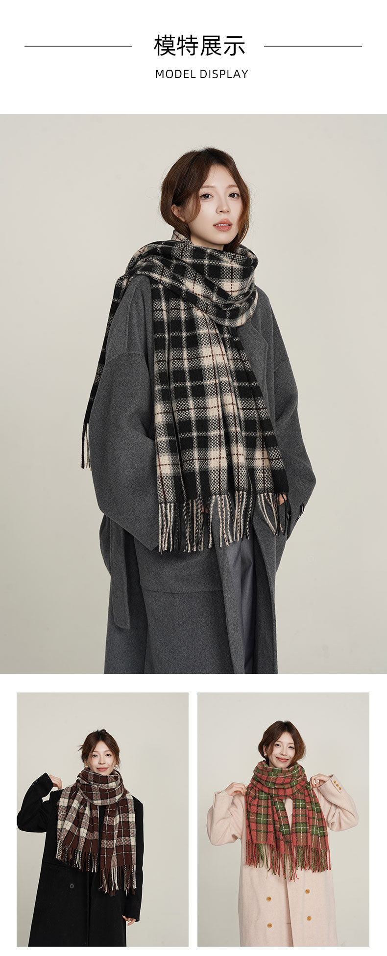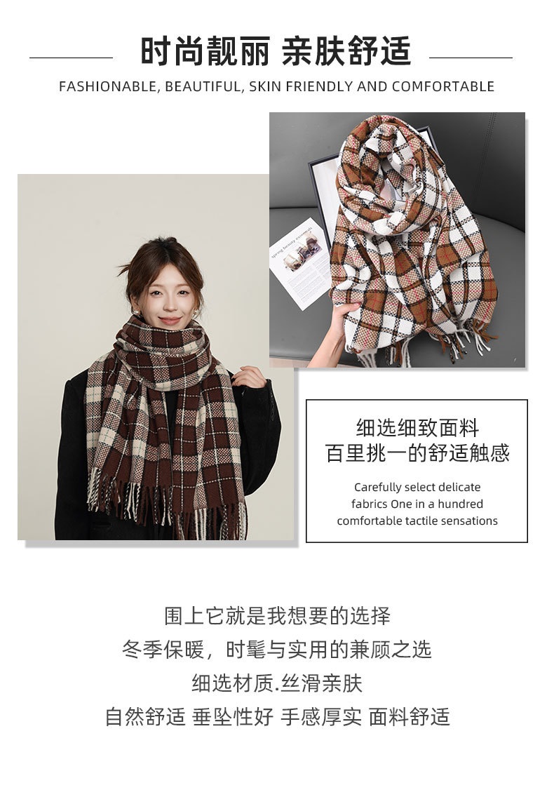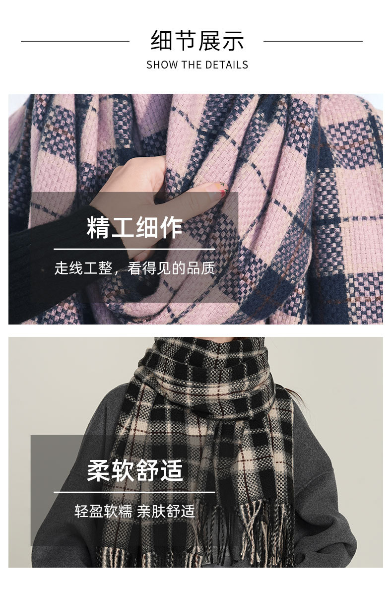 2025년 한국 신상품 직조 체크무늬 스카프 모조 캐시미어 프린지 숄 가을 겨울 고급스러운 두꺼운 목도리스토어 가기