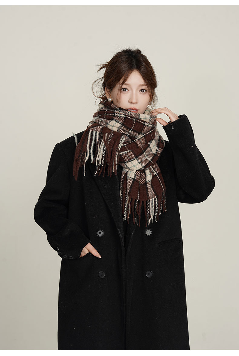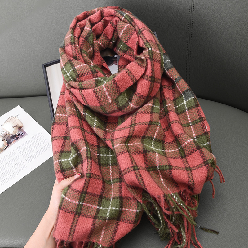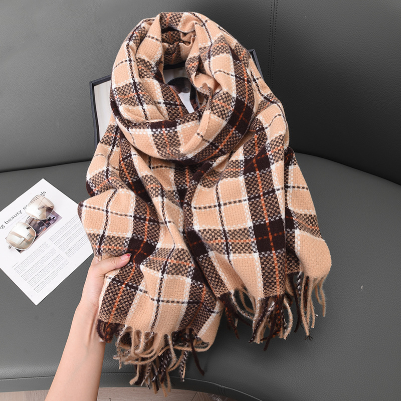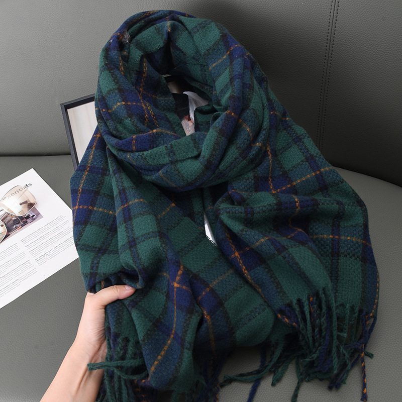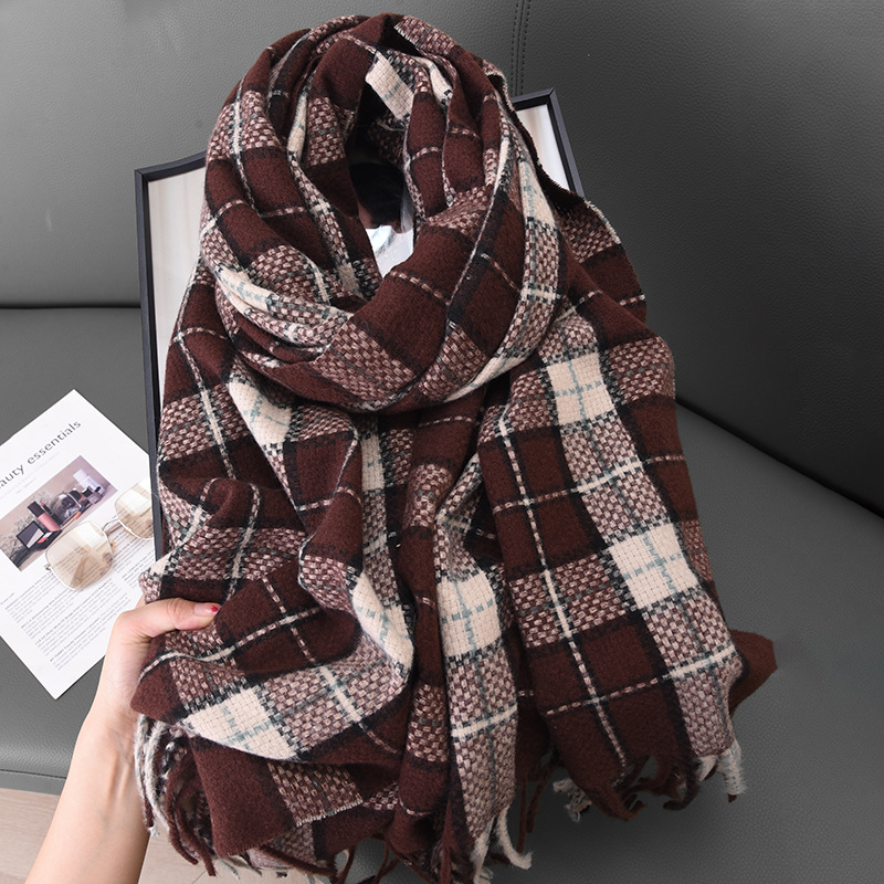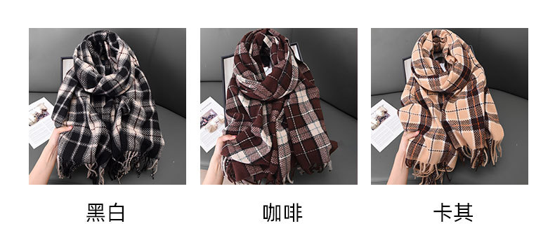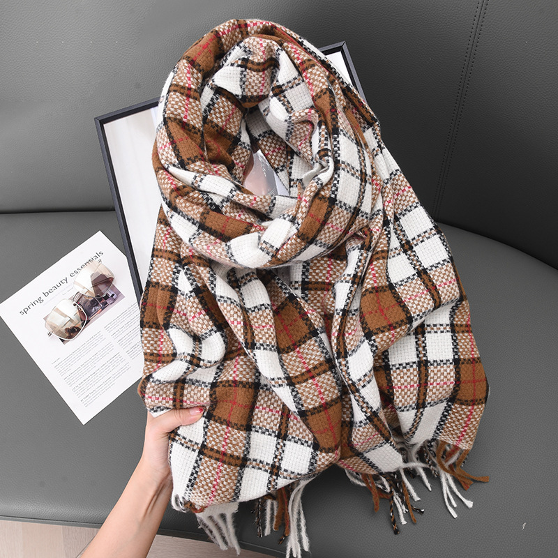 2025년 한국 신상품 직조 체크무늬 스카프 모조 캐시미어 프린지 숄 가을 겨울 고급스러운 두꺼운 목도리스토어 가기