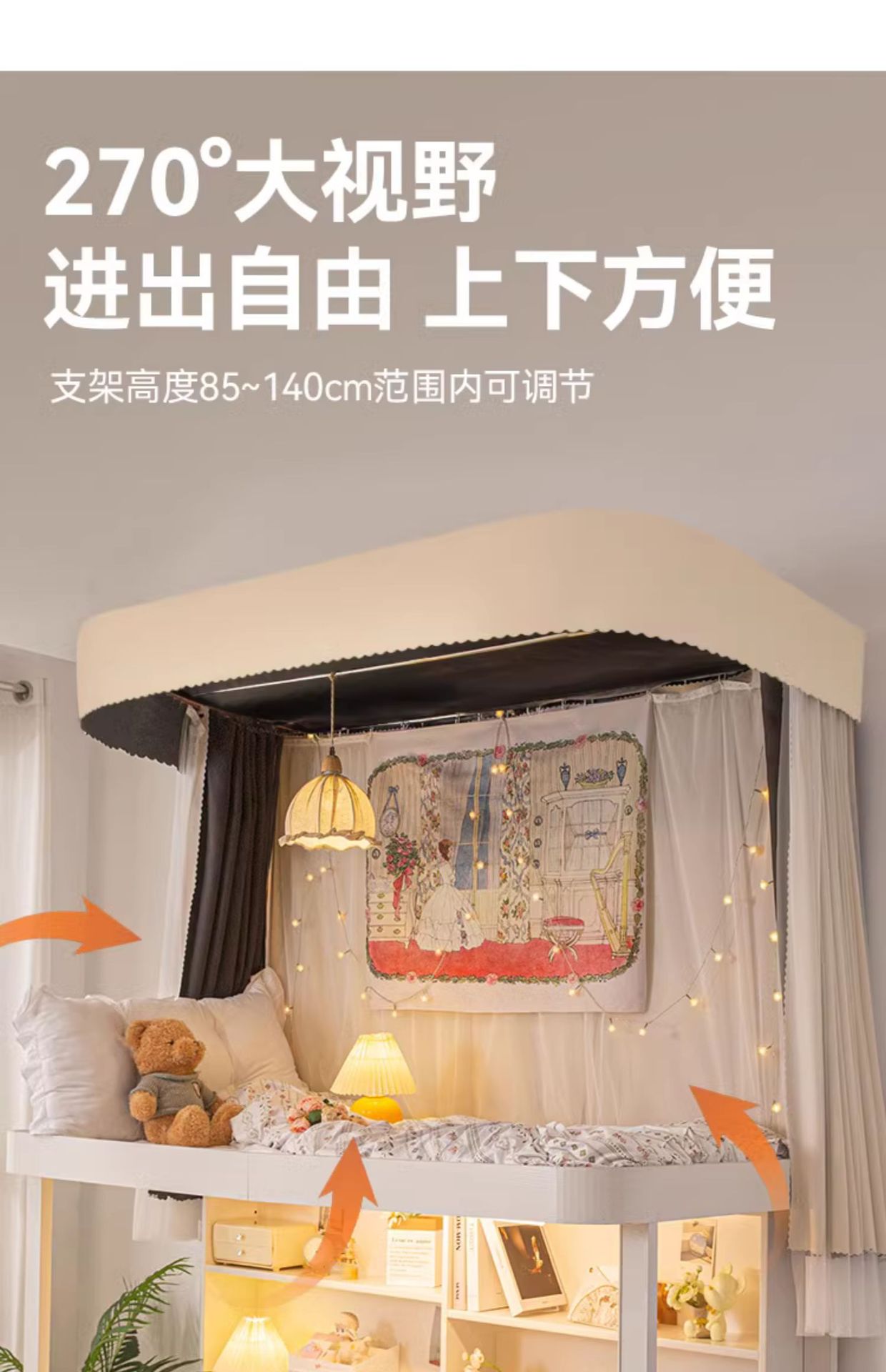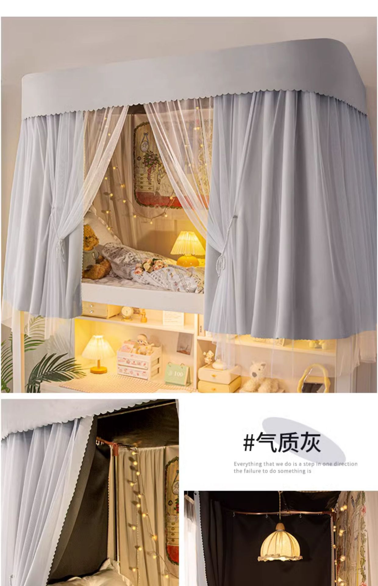 • 버블독 커튼 3개 + 실 3개 + 상단 + U자형 텔레스코픽 브래킷 [벽에 의존하여 만화 커튼 업그레이드]