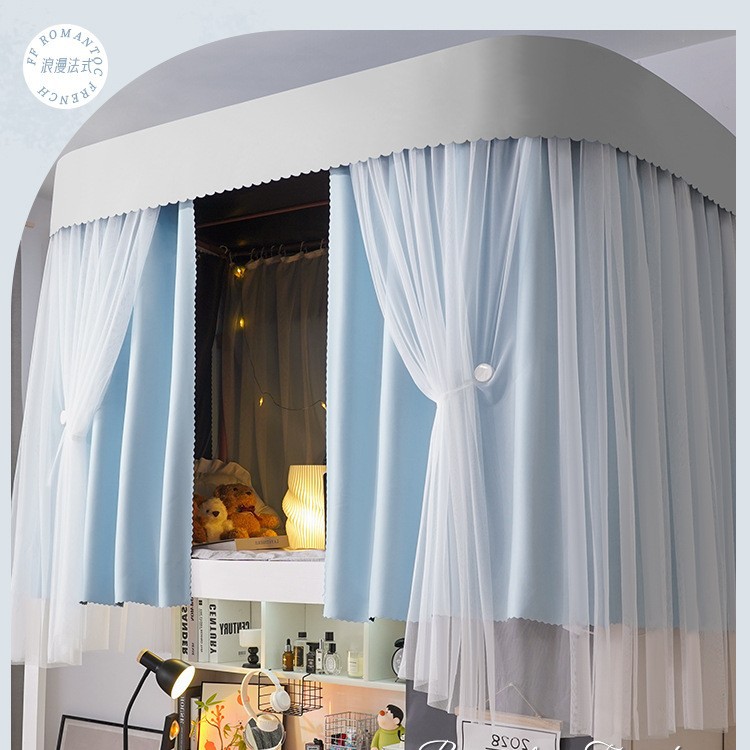U 자형 더블 슬라이드 트랙 학생 기숙사 침대 커튼 모기장 통합 상하 이층 강한 음영 커튼 기숙사 U 자형