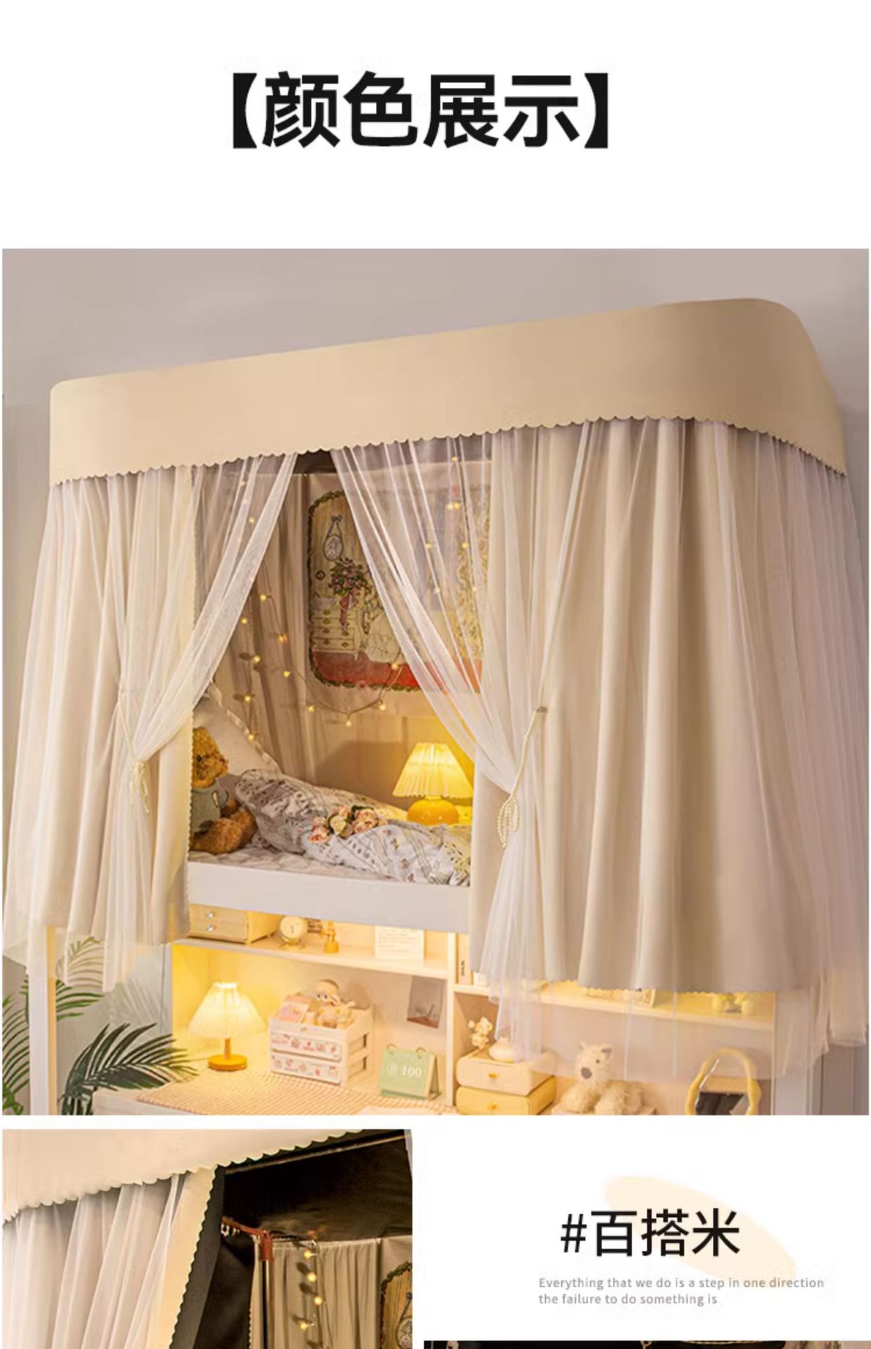 • 크림라이스 커튼 3개 + 실 3개 + 탑 + U자형 텔레스코픽 브라켓