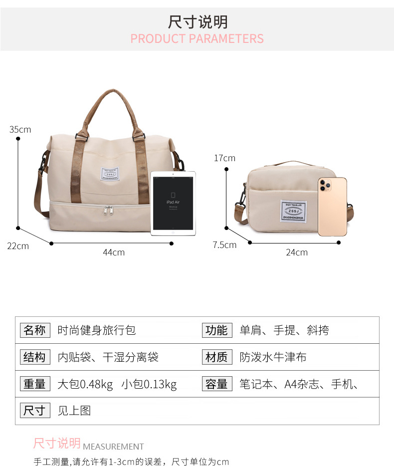 여행 가방 확장 휴대용 독립 신발 창고 간단한 스포츠 가방 건조하고 젖은 분리 수영 체육관 가방 단열 피크닉 가방