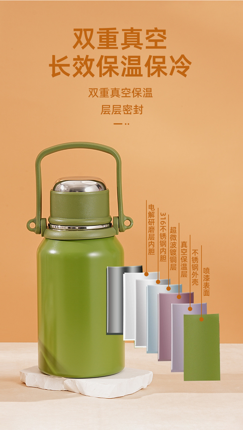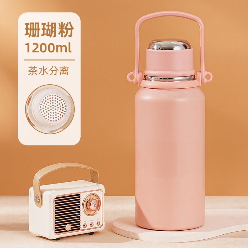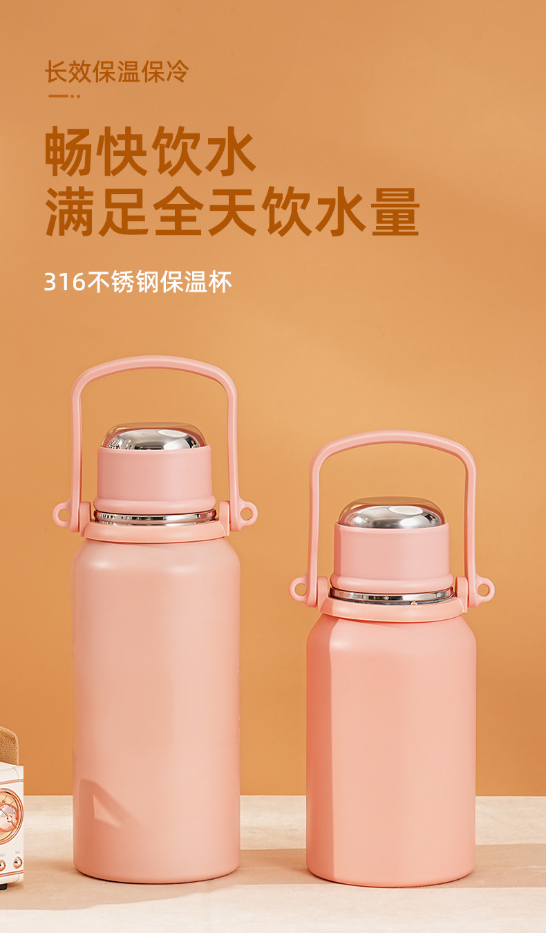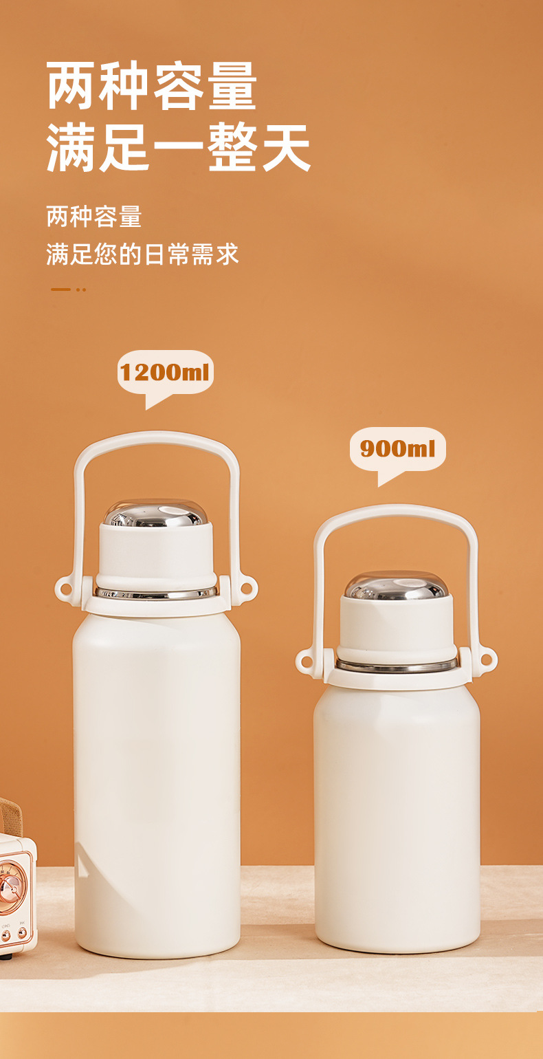 새로운 1200ml 대용량 316 스테인레스 스틸 보온병 컵 휴대용 핸들 등산 여행 야외 스포츠 워터 컵