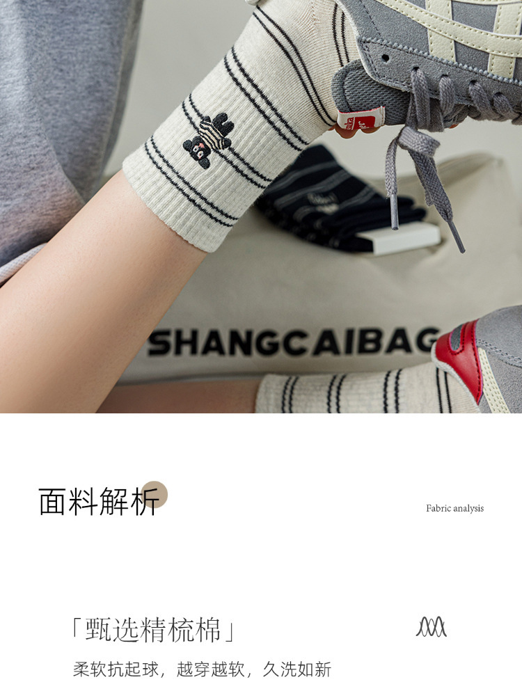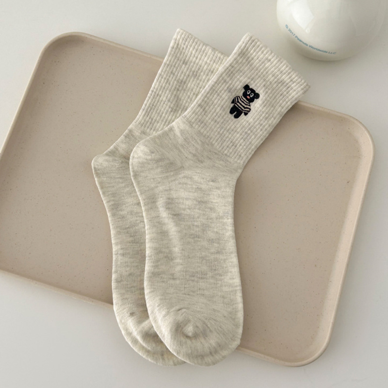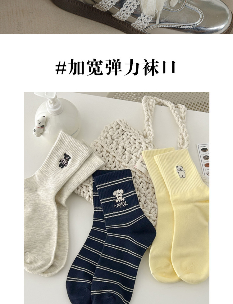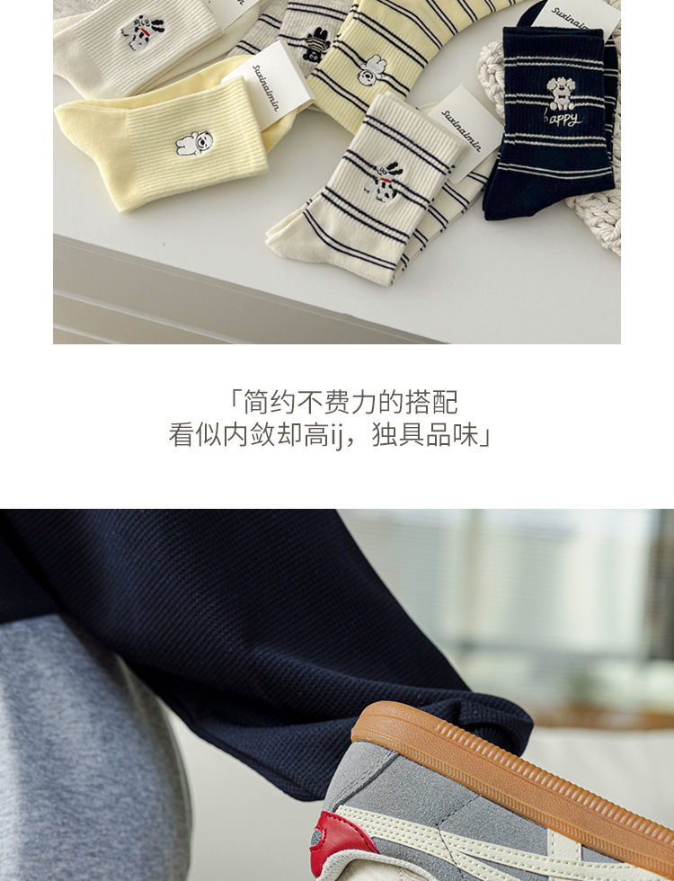 2024 가을 겨울 귀여운 강아지 자수 트렌디 힐링 스트라이프 종아리 양말 인 캐주얼 파일 양말스토어 가기