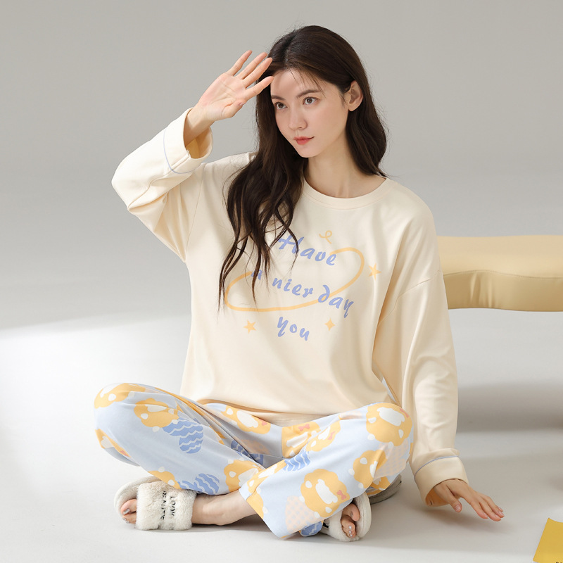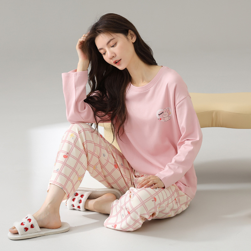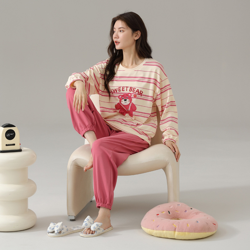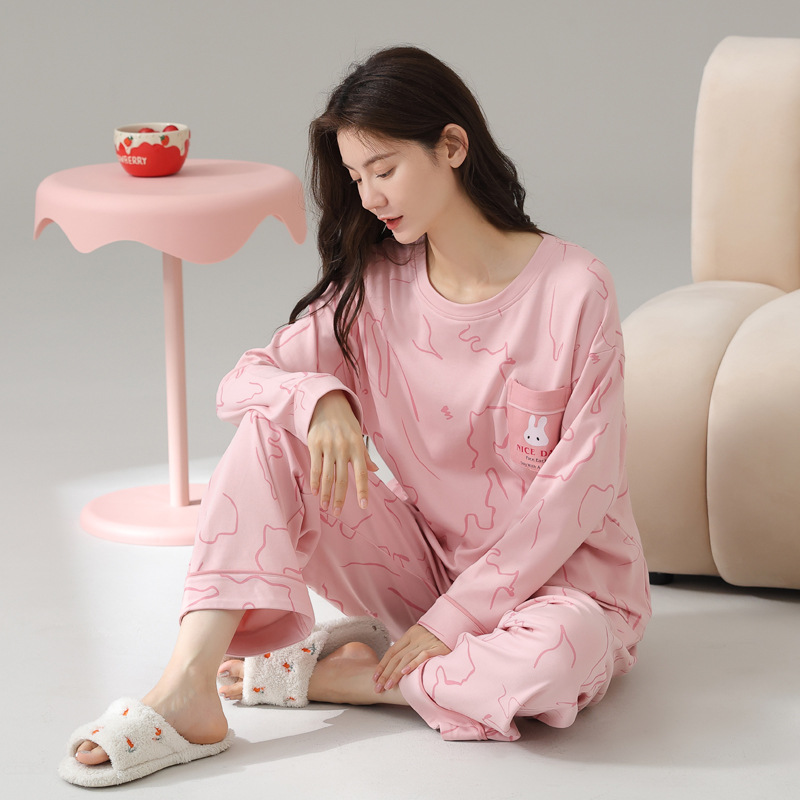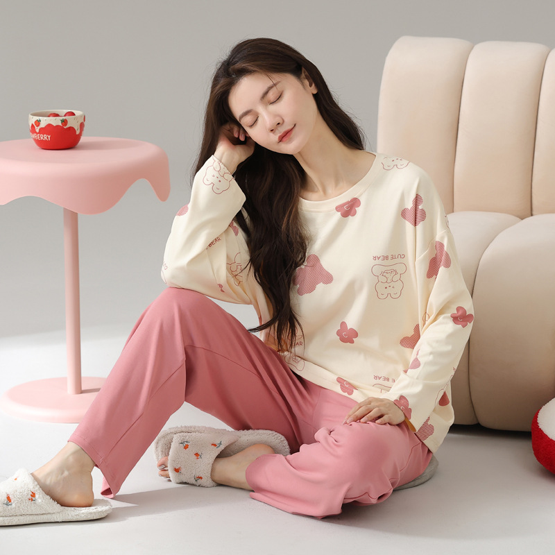 2024 봄과 가을 새로운 잠옷 여성용 코튼 긴 소매 코튼 가을 캐주얼 아웃웨어 홈 의류 세트스토어 가기