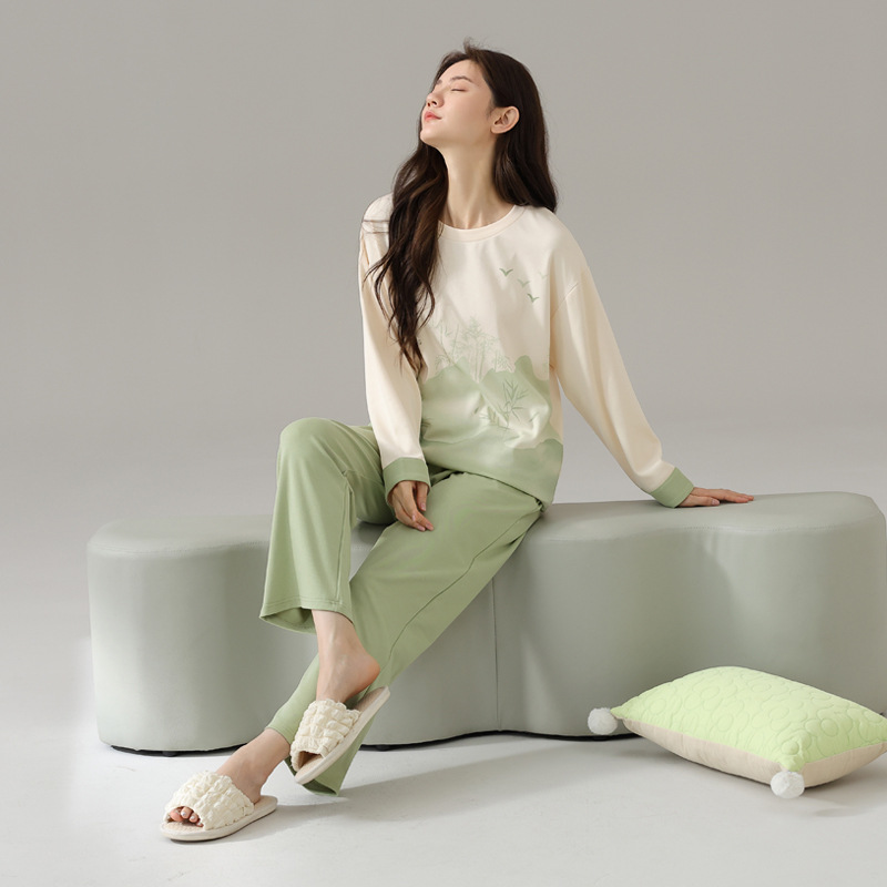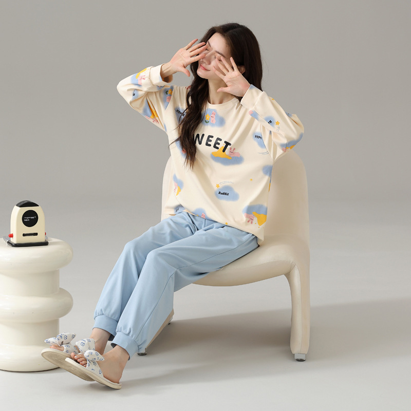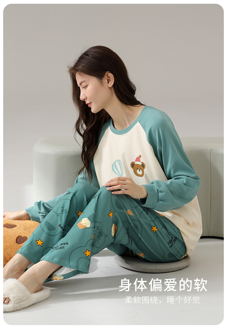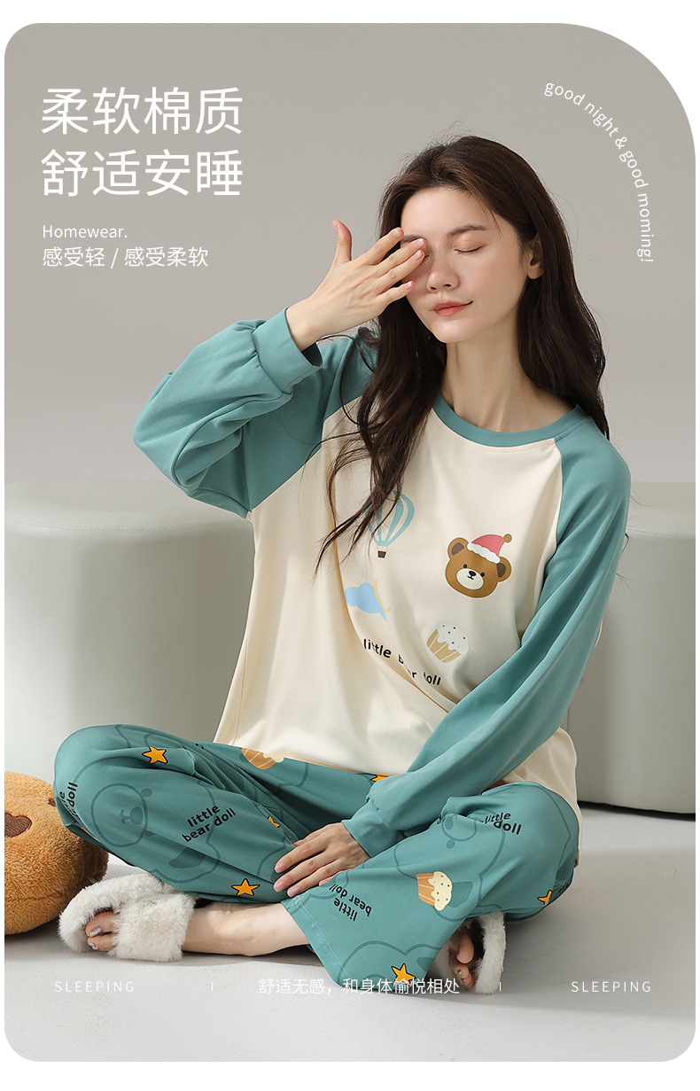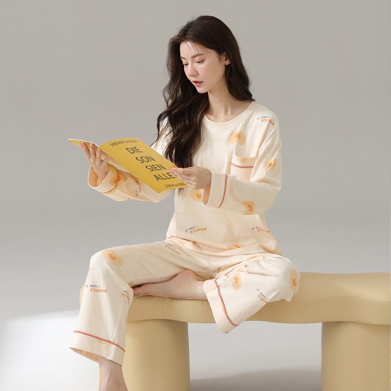 2024 봄과 가을 새로운 잠옷 여성용 코튼 긴 소매 코튼 가을 캐주얼 아웃웨어 홈 의류 세트스토어 가기