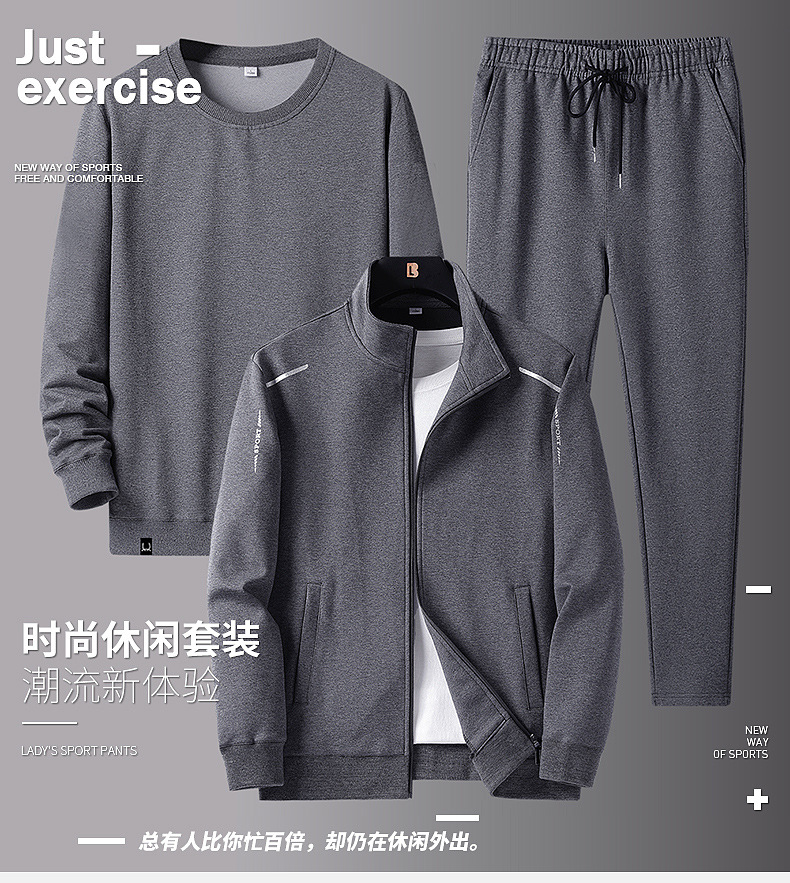 新款男士春秋装运动服套装中年爸爸装宽松卫衣三件套大码休闲外套스토어 가기
