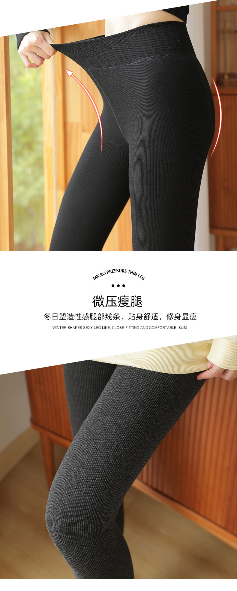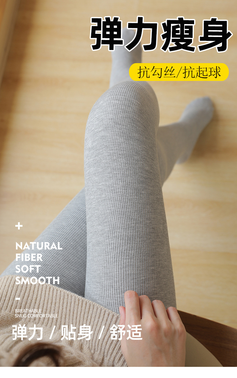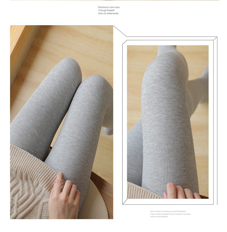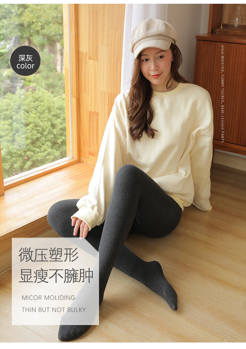 여성용 겉옷 봄 및 가을 원피스 기모 두꺼운 따뜻한면 바지 발 팬티 스타킹을위한 2 피스 회색 실 레깅스스토어 가기