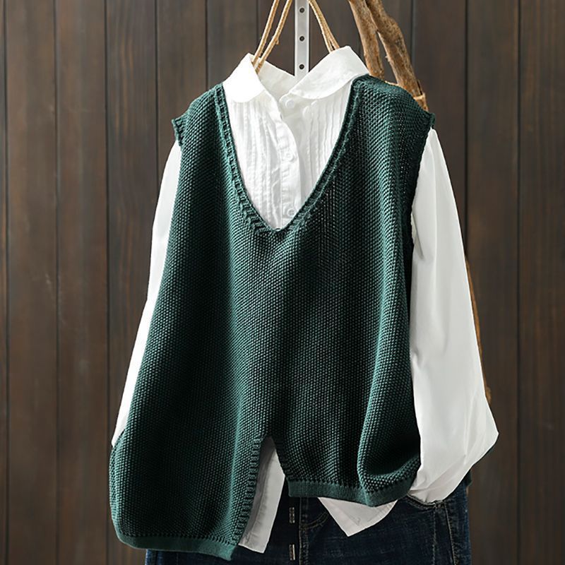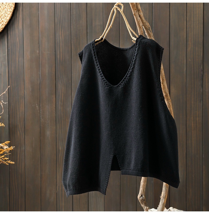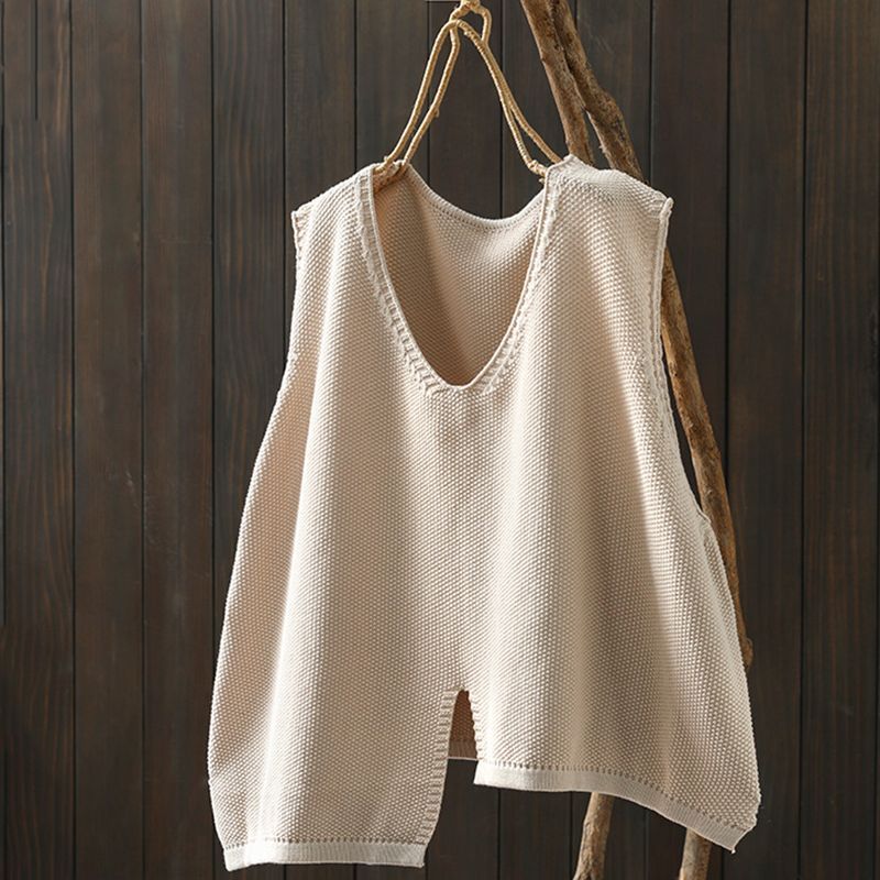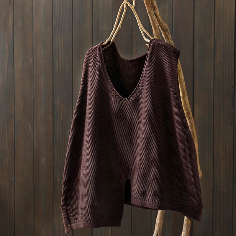 가을과 겨울 간단한 불규칙한 헴 민족 스타일 니트 조끼 여성 복고풍 느슨한 V 넥 풀오버 웨이스트 코트스토어 가기