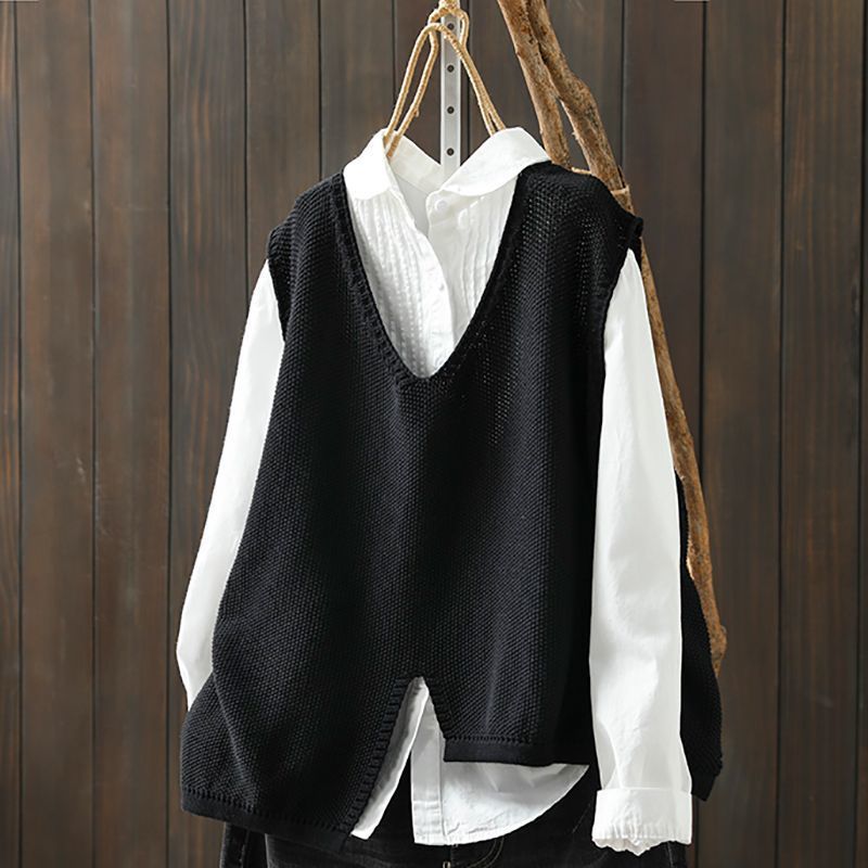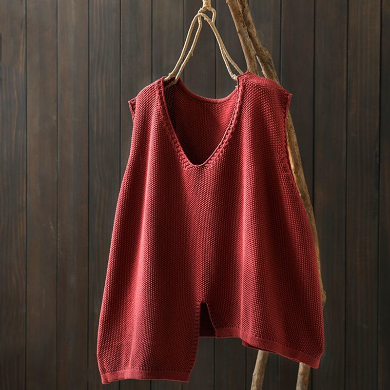 가을과 겨울 간단한 불규칙한 헴 민족 스타일 니트 조끼 여성 복고풍 느슨한 V 넥 풀오버 웨이스트 코트