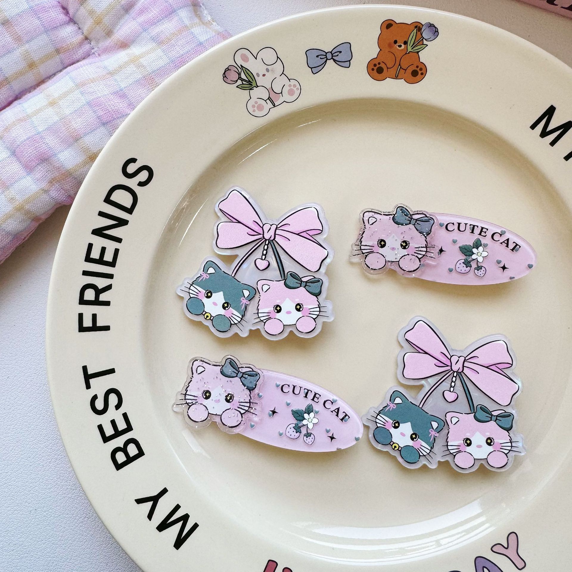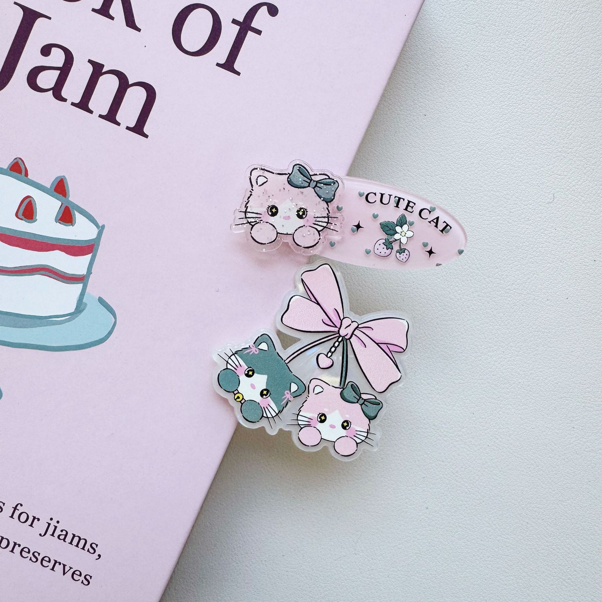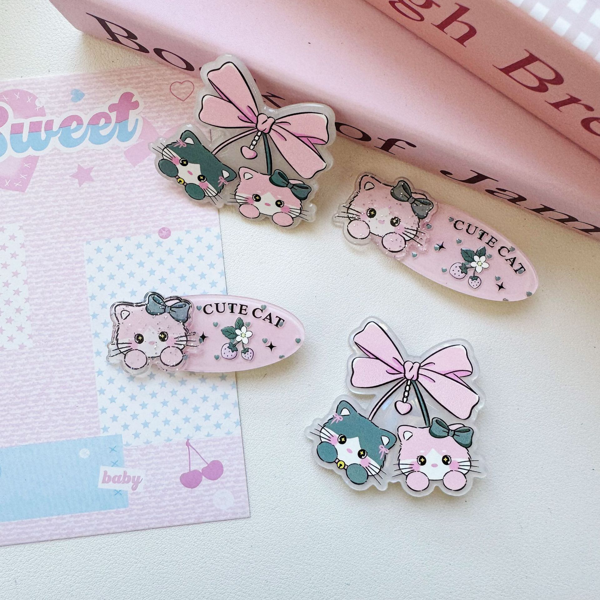 귀여운 활 체리 새끼 고양이 아크릴 헤어핀 Ins 소녀 하트 뱅 사이드 클립 일본과 한국 올 매치 학생스토어 가기