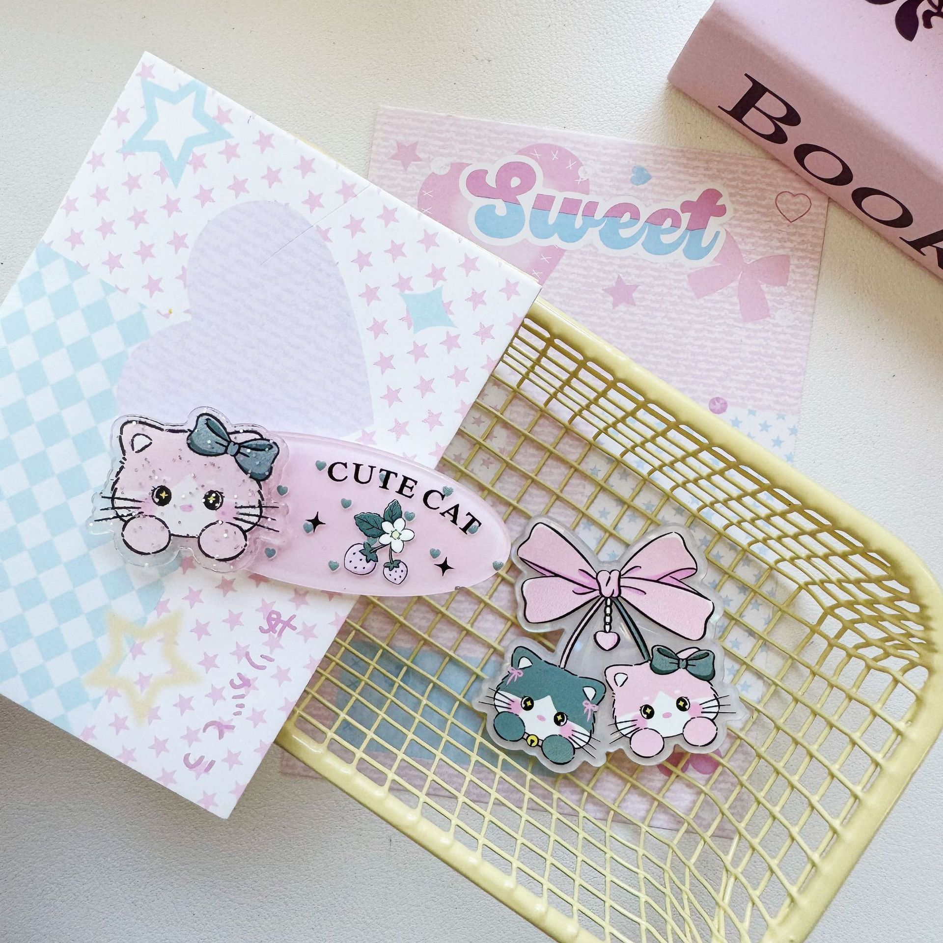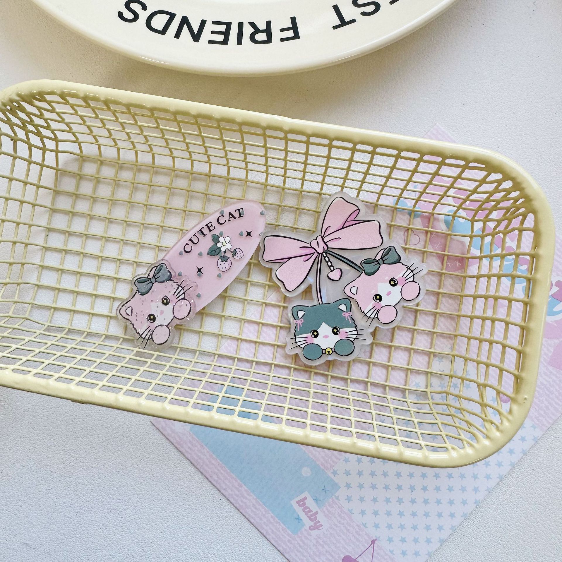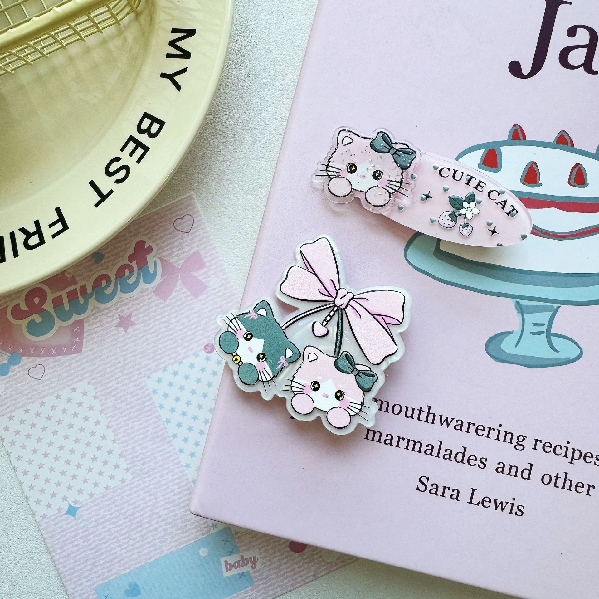 귀여운 활 체리 새끼 고양이 아크릴 헤어핀 Ins 소녀 하트 뱅 사이드 클립 일본과 한국 올 매치 학생스토어 가기