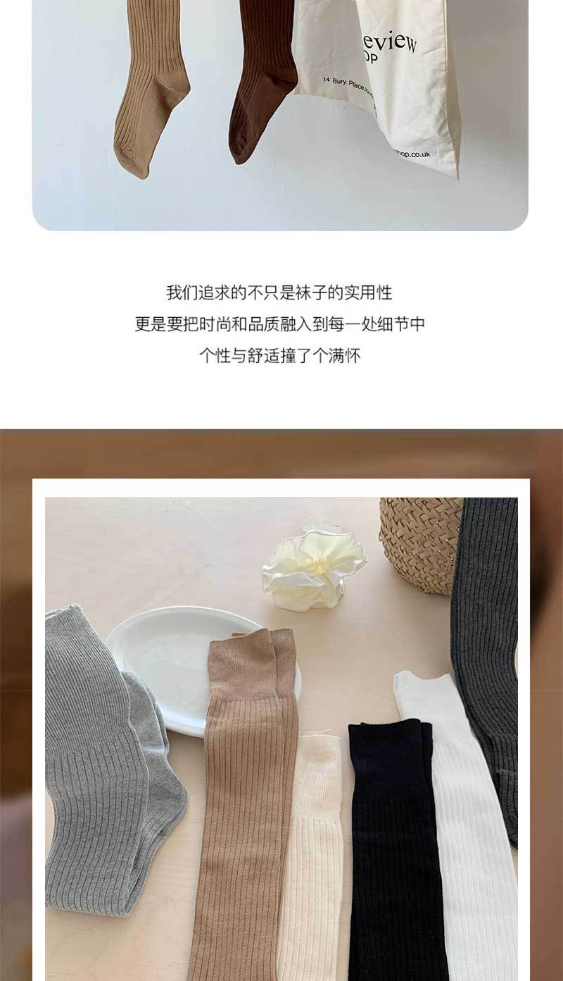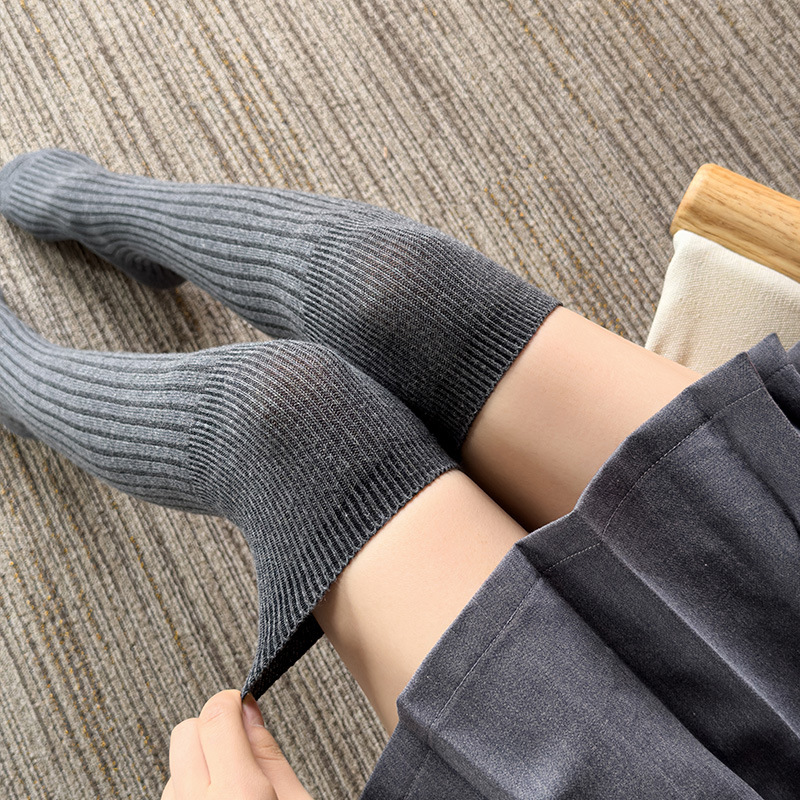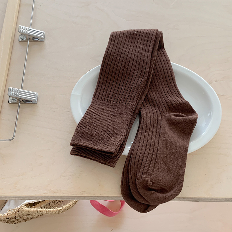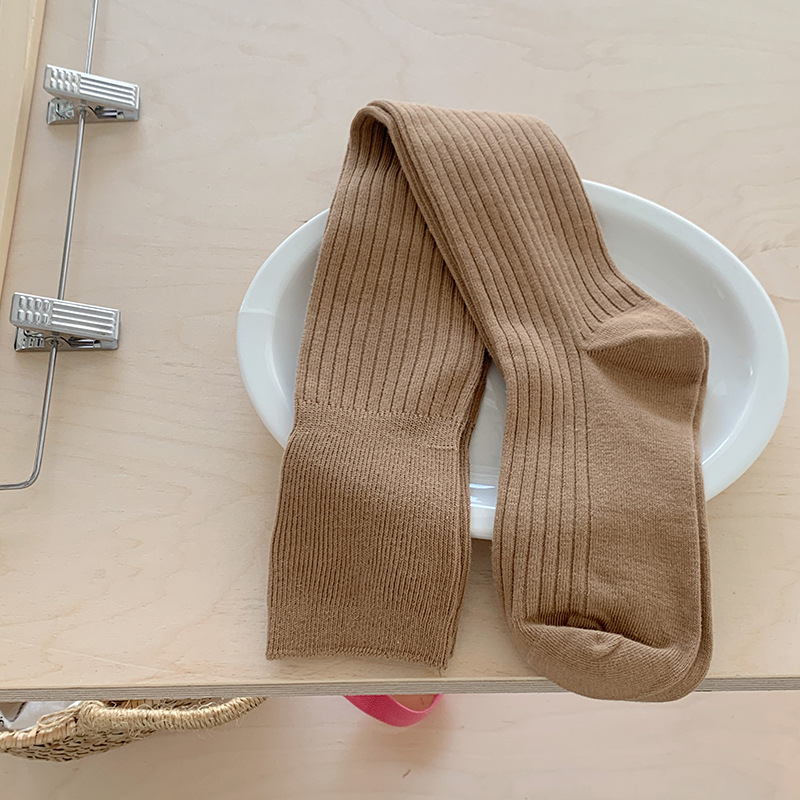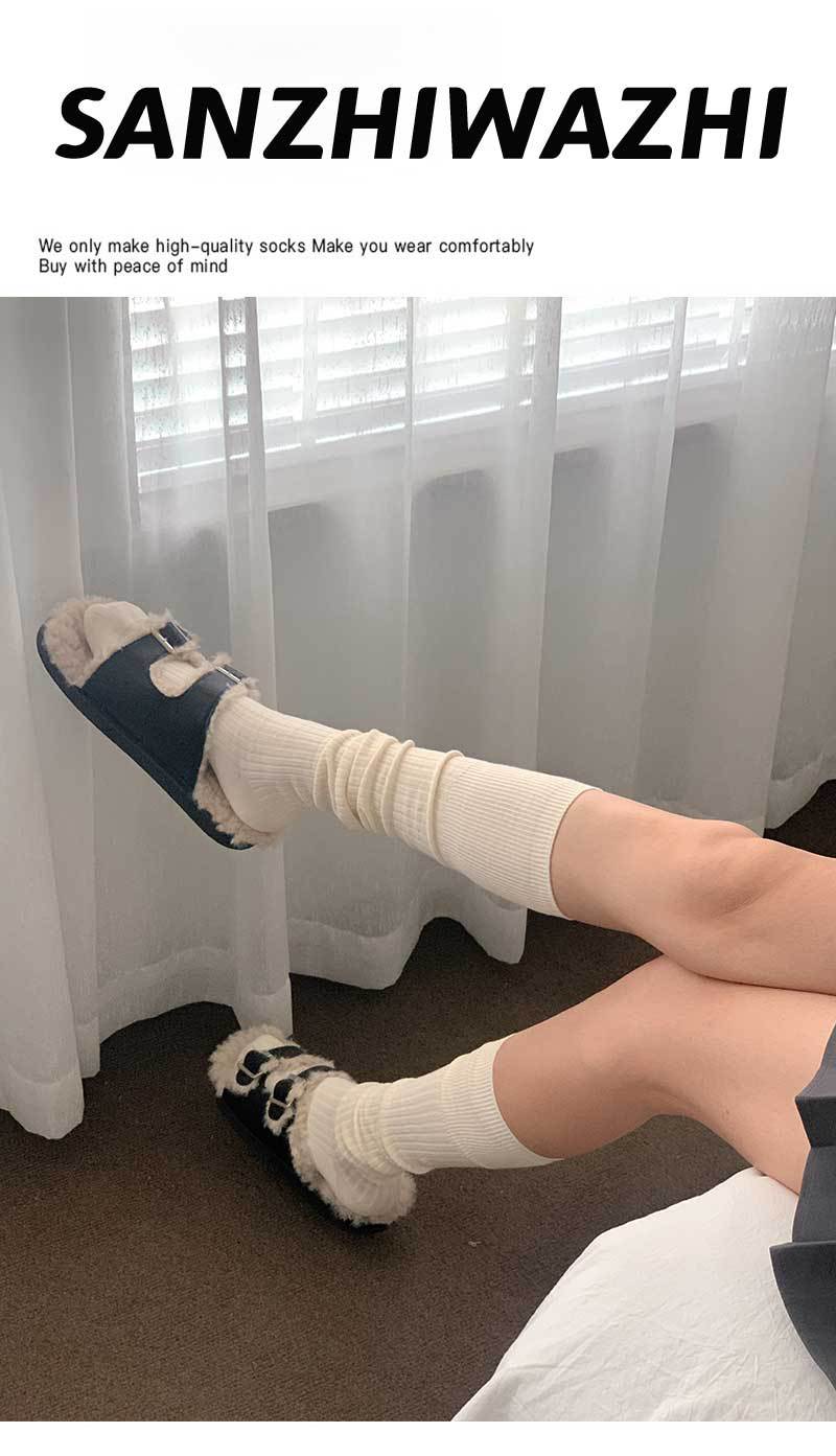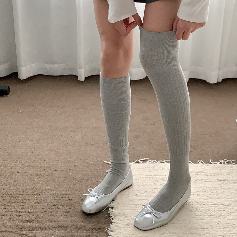 무릎 위 양말 흰색 양말 여성의 봄과 가을 얇은 쌓인 양말 더블 바늘 빗질면 부츠 양말 단색 한국 긴 튜브