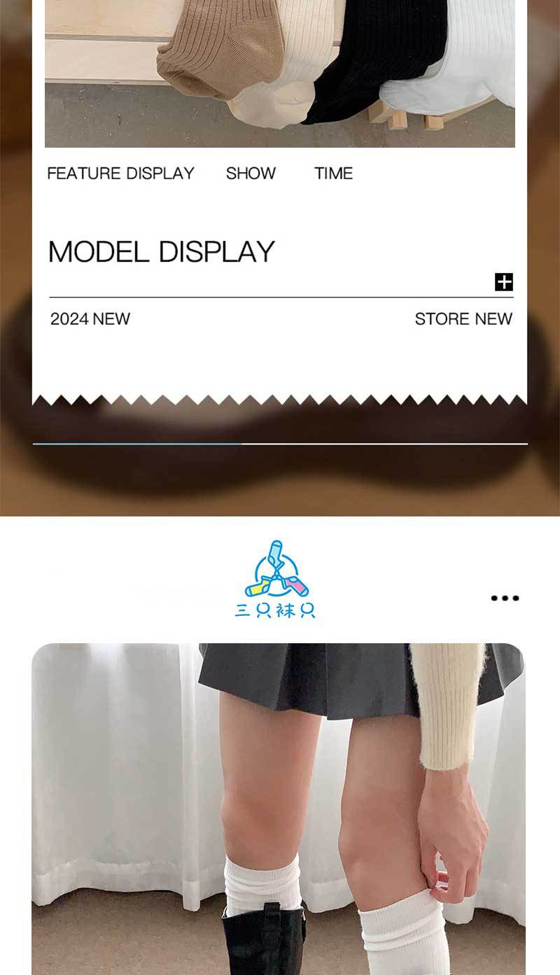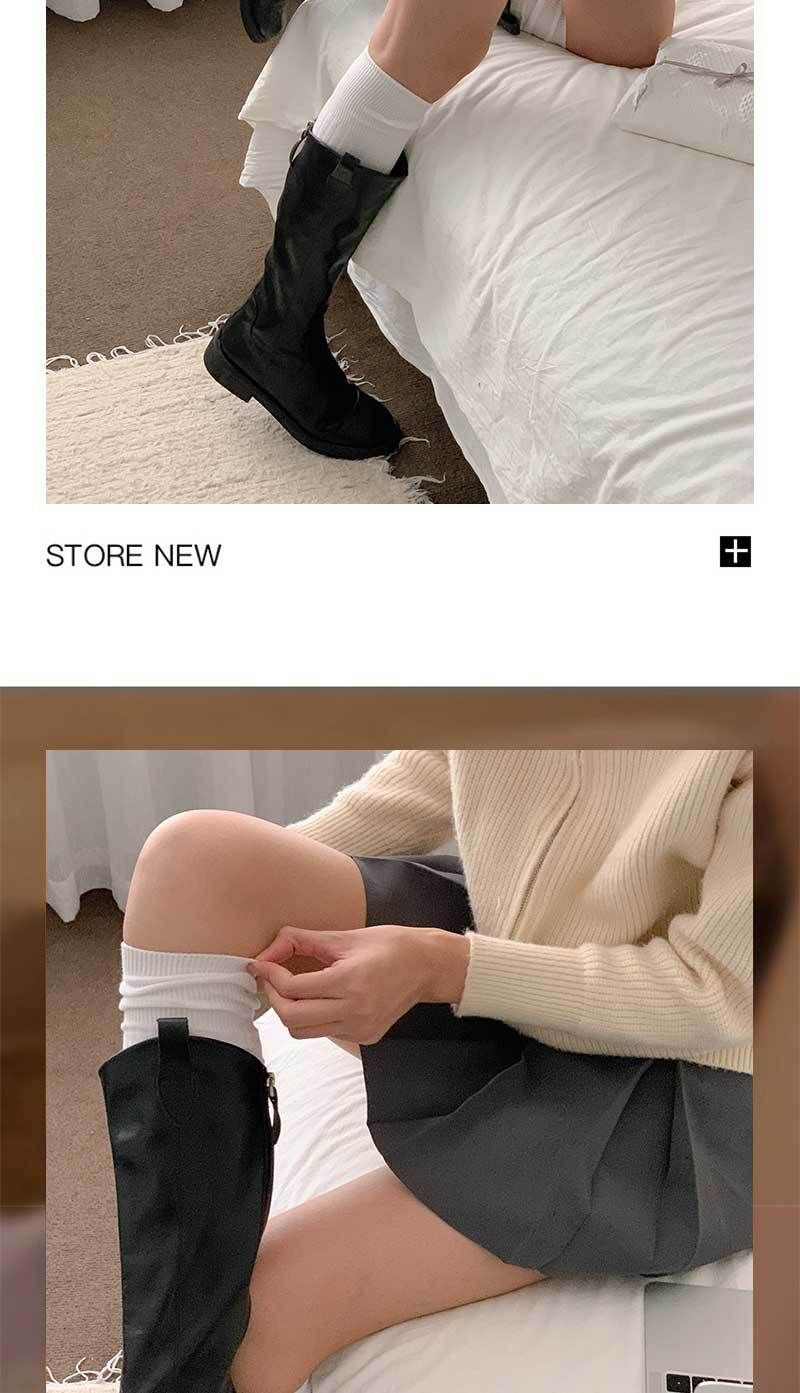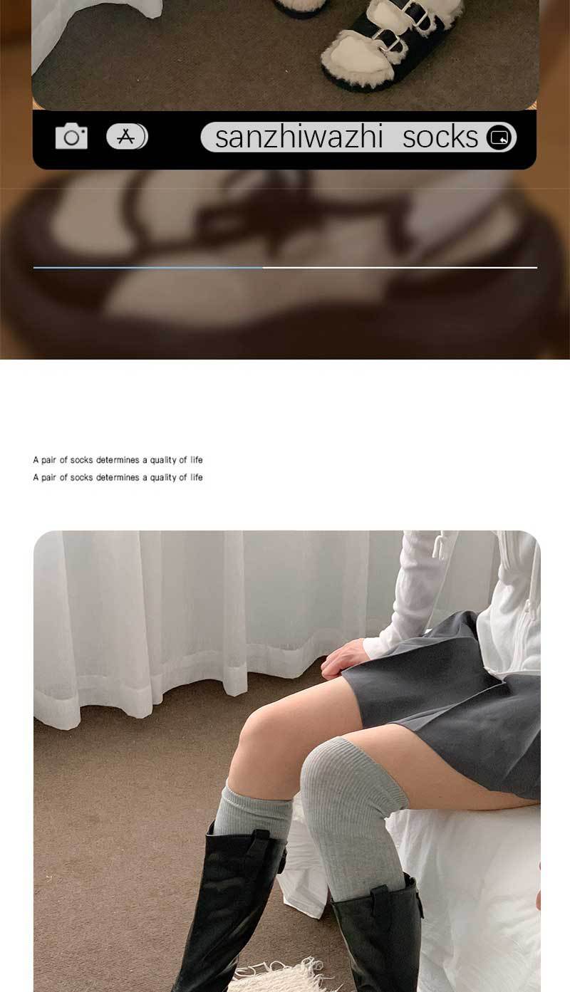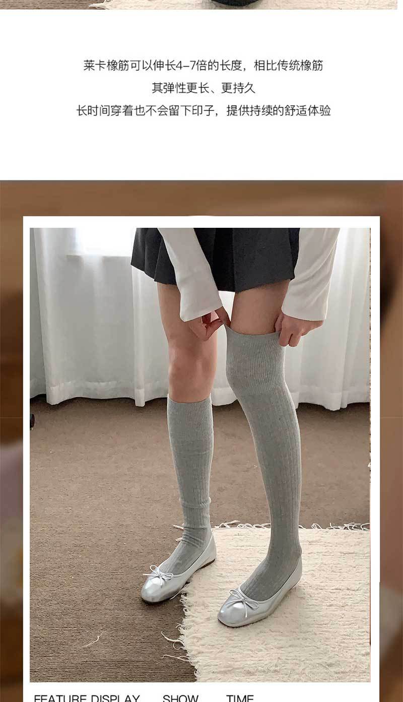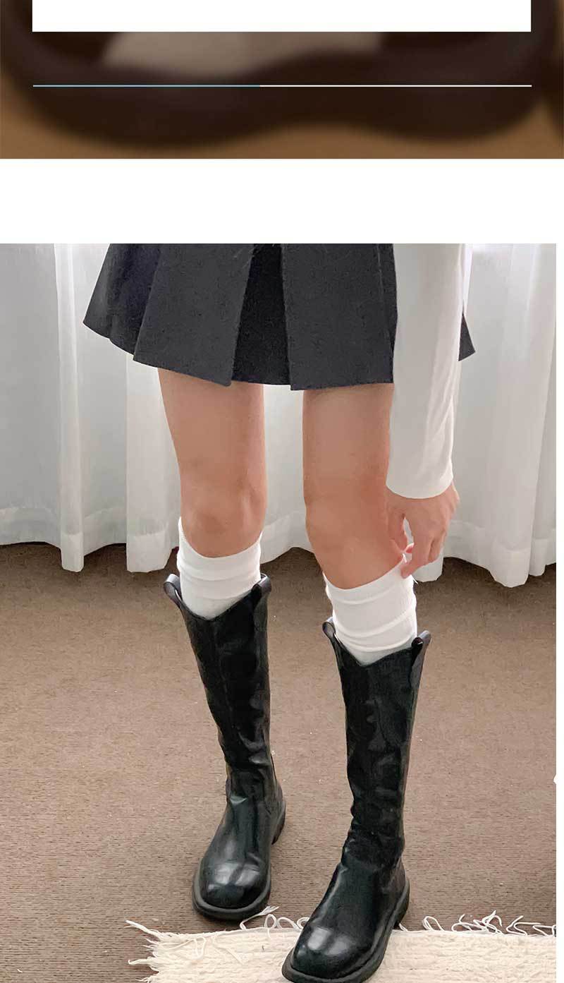 무릎 위 양말 흰색 양말 여성의 봄과 가을 얇은 쌓인 양말 더블 바늘 빗질면 부츠 양말 단색 한국 긴 튜브