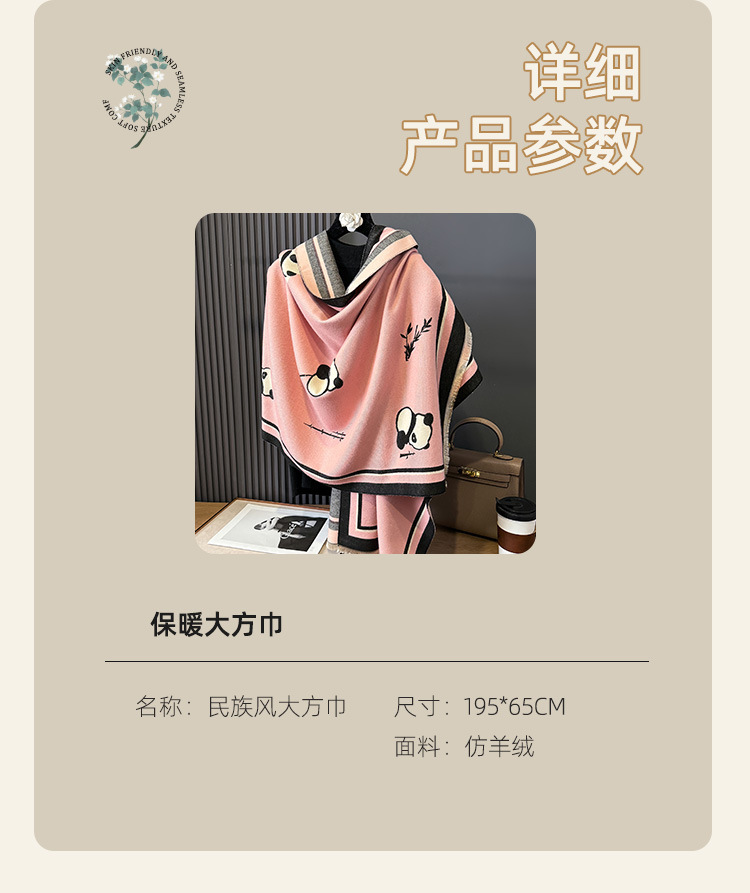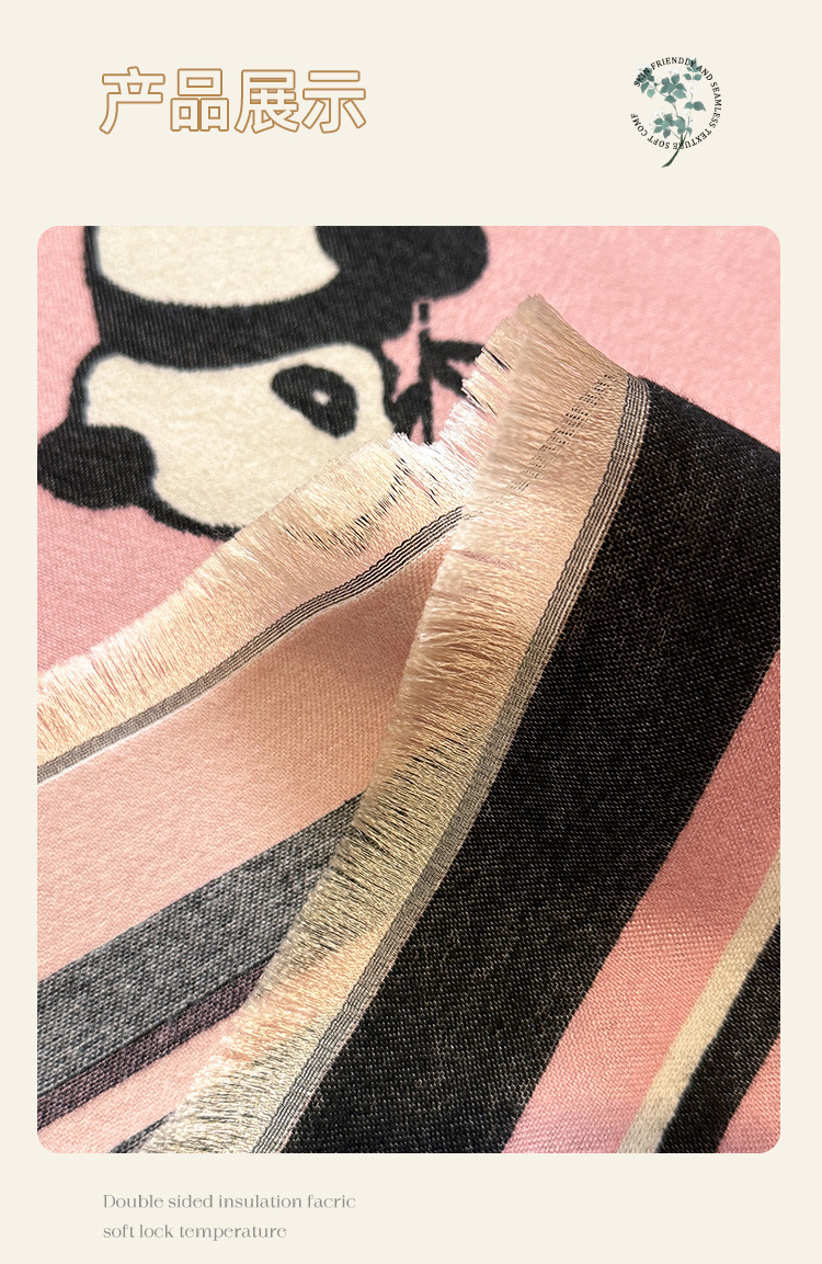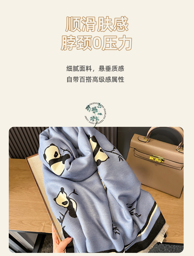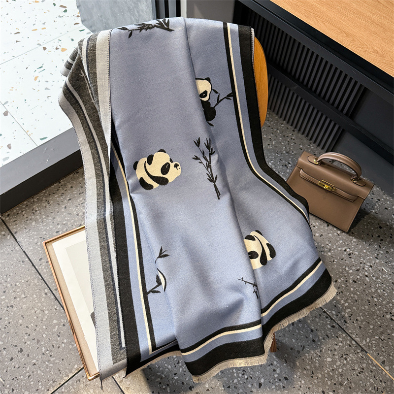 2024 오리지널 팬더 만화 패턴 간단한 모든 경기 따뜻한 핑크 블루 스카프 여성의 겨울 외부 긴 스카프