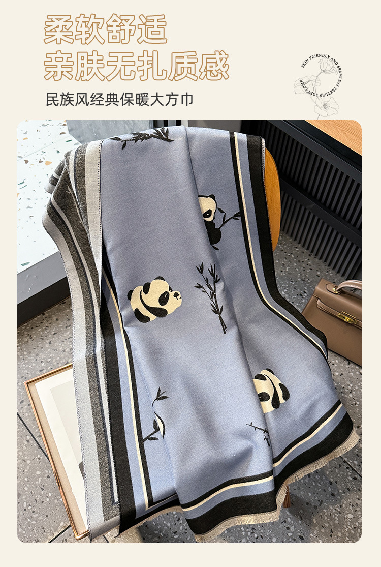 2024 오리지널 팬더 만화 패턴 간단한 모든 경기 따뜻한 핑크 블루 스카프 여성의 겨울 외부 긴 스카프스토어 가기