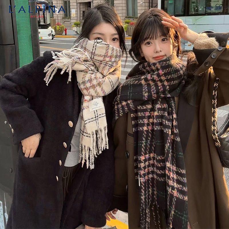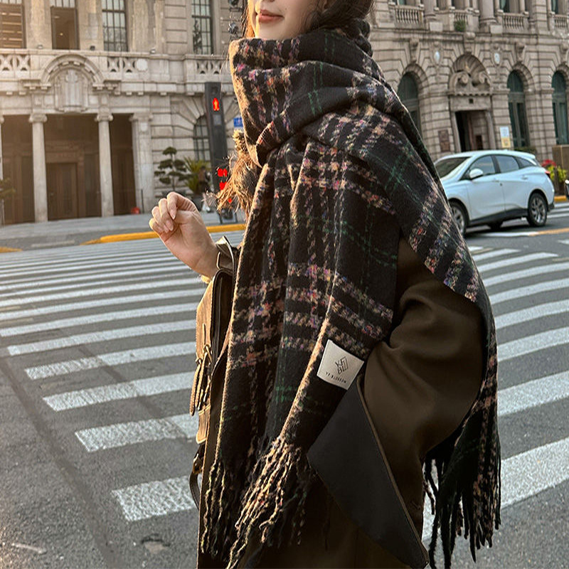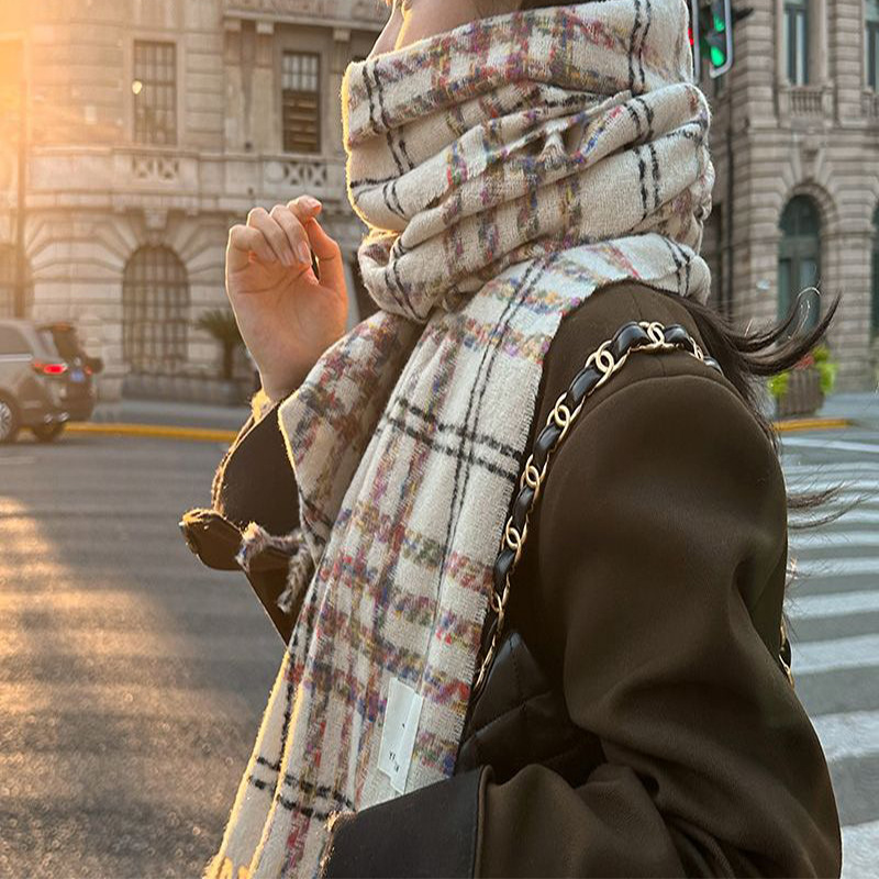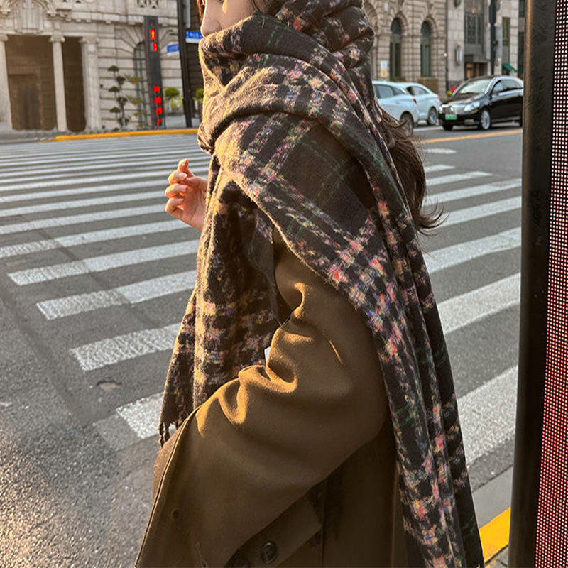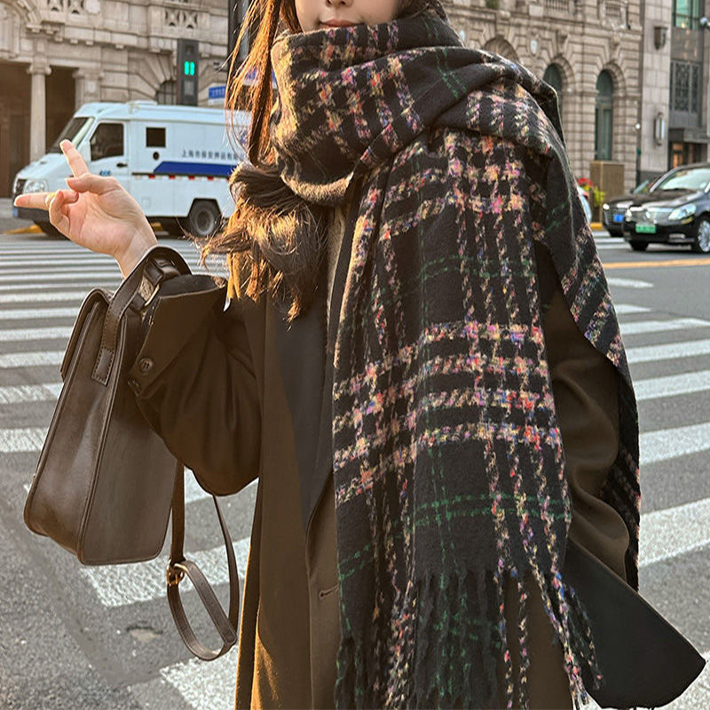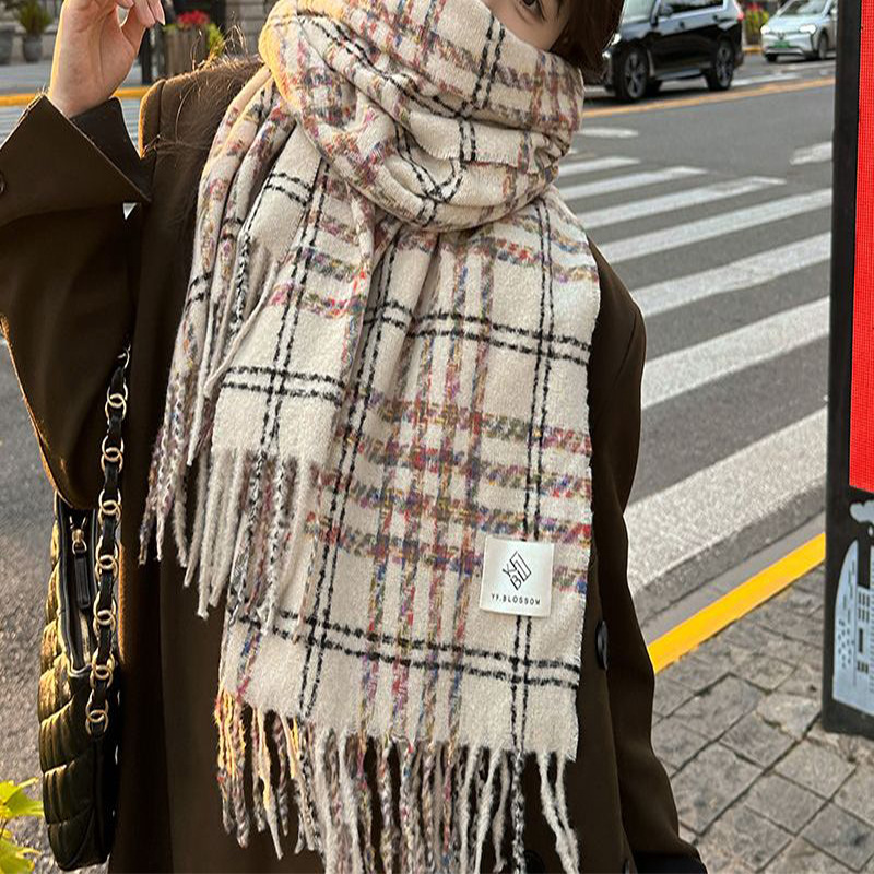 캐시미어 컬러 체크 무늬 스카프 여성의 겨울 하이 엔드 센스 새로운 한국 스타일 신선한 체크 무늬 두꺼운 따뜻한 목