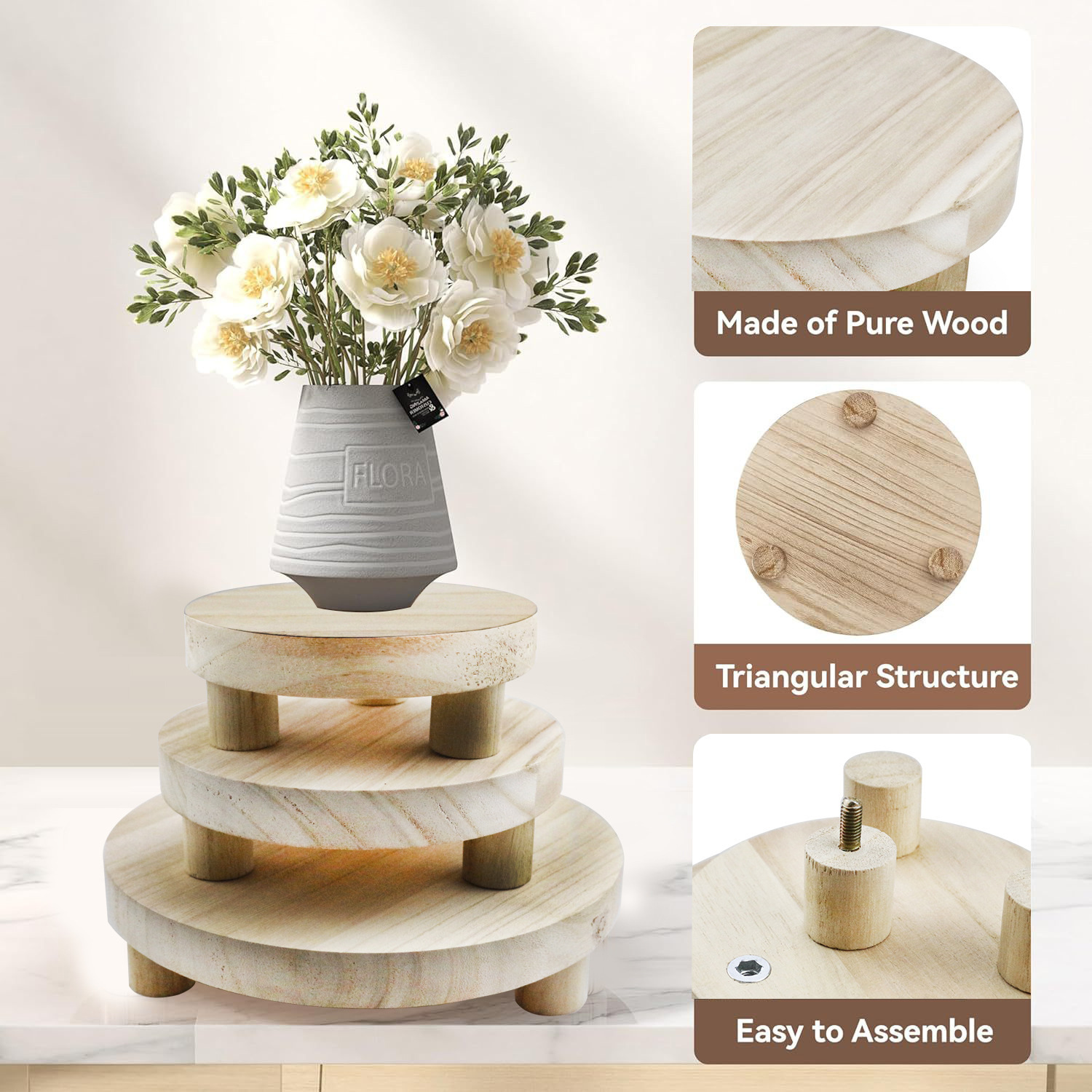 원목 원형 화분 받침대 휴대용 탈착식 도구 필요 없음 욕실 물품 수납 선반