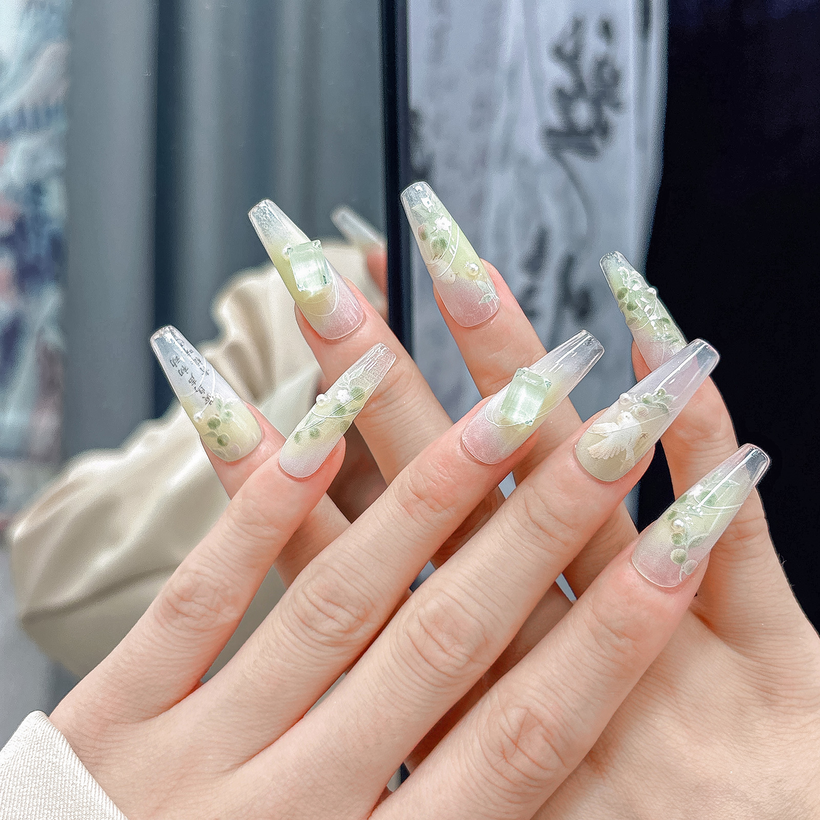 개미 그림 YITU 녹색 매화 황잉 구호 네일 아트 스티커 접착 얇은 터프 고대 라임 꽃과 새 네일 장식 스티커 YT3623스토어 가기