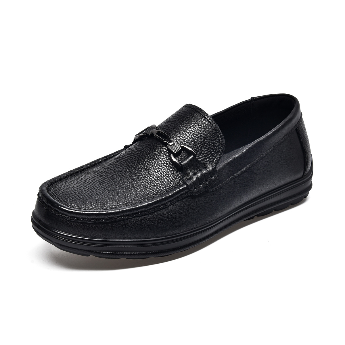 남자 로퍼 2024 가을과 겨울 새로운 검은 금속 버클 슬립 온 신발 편안한 얕은 입 플랫 로퍼스토어 가기