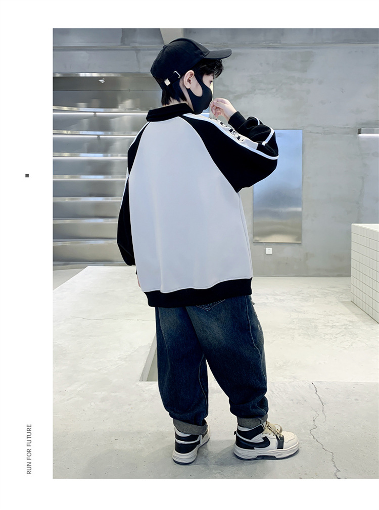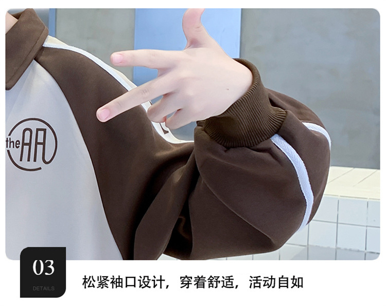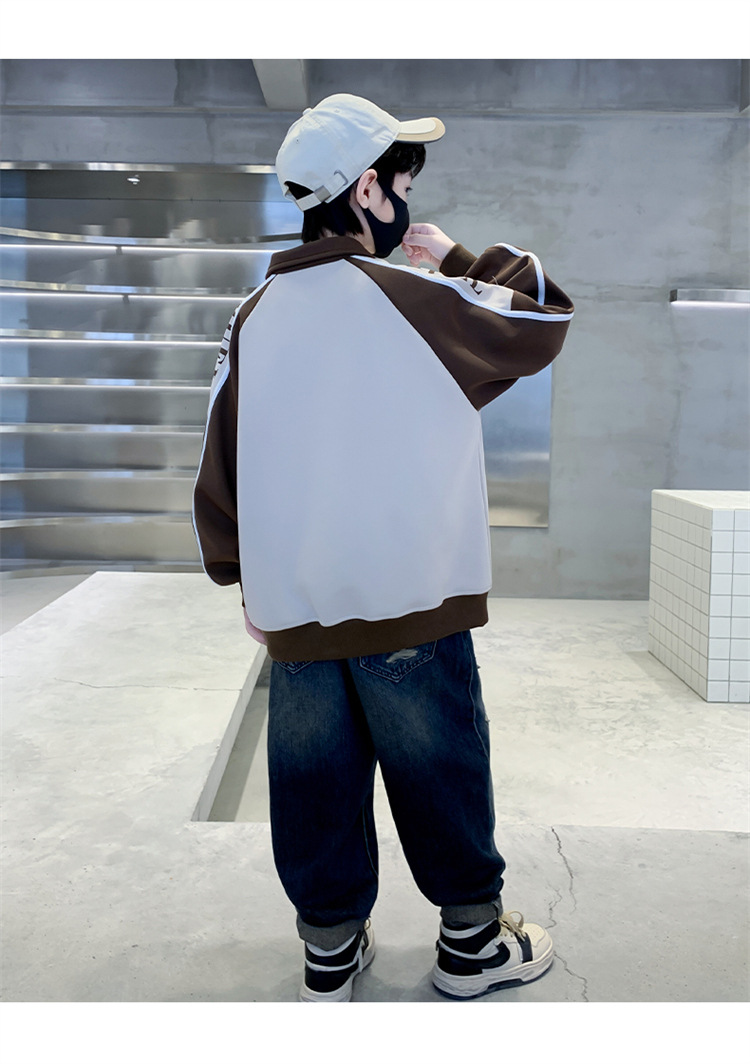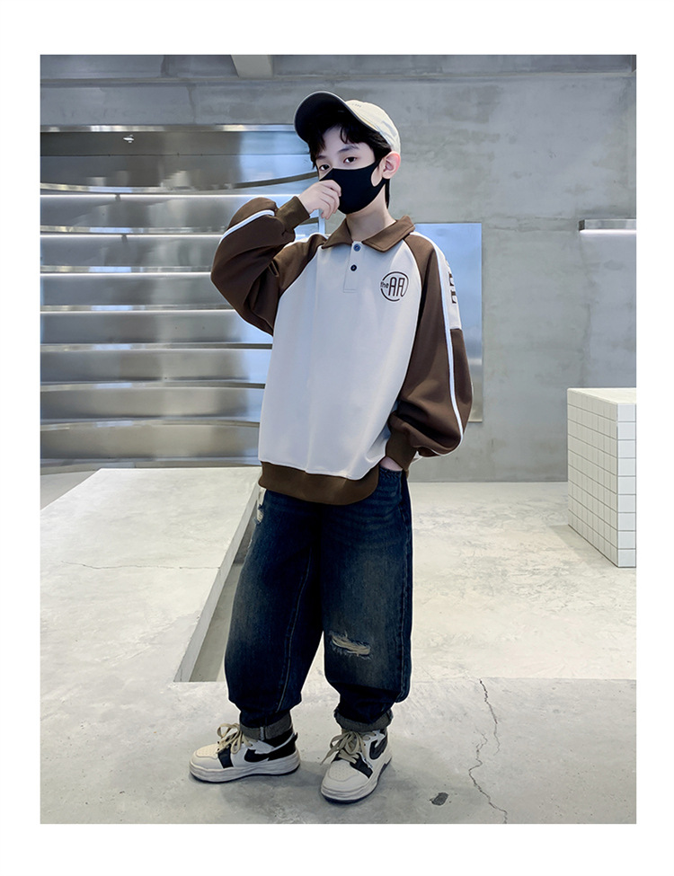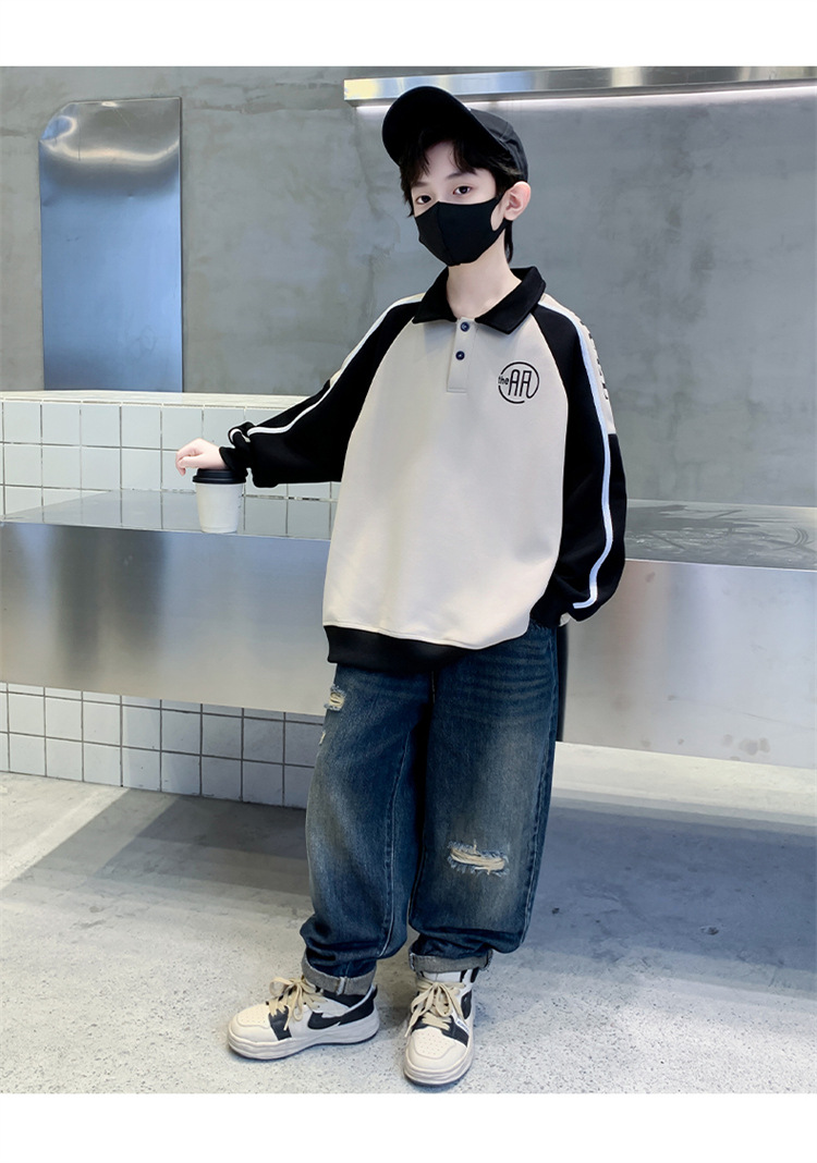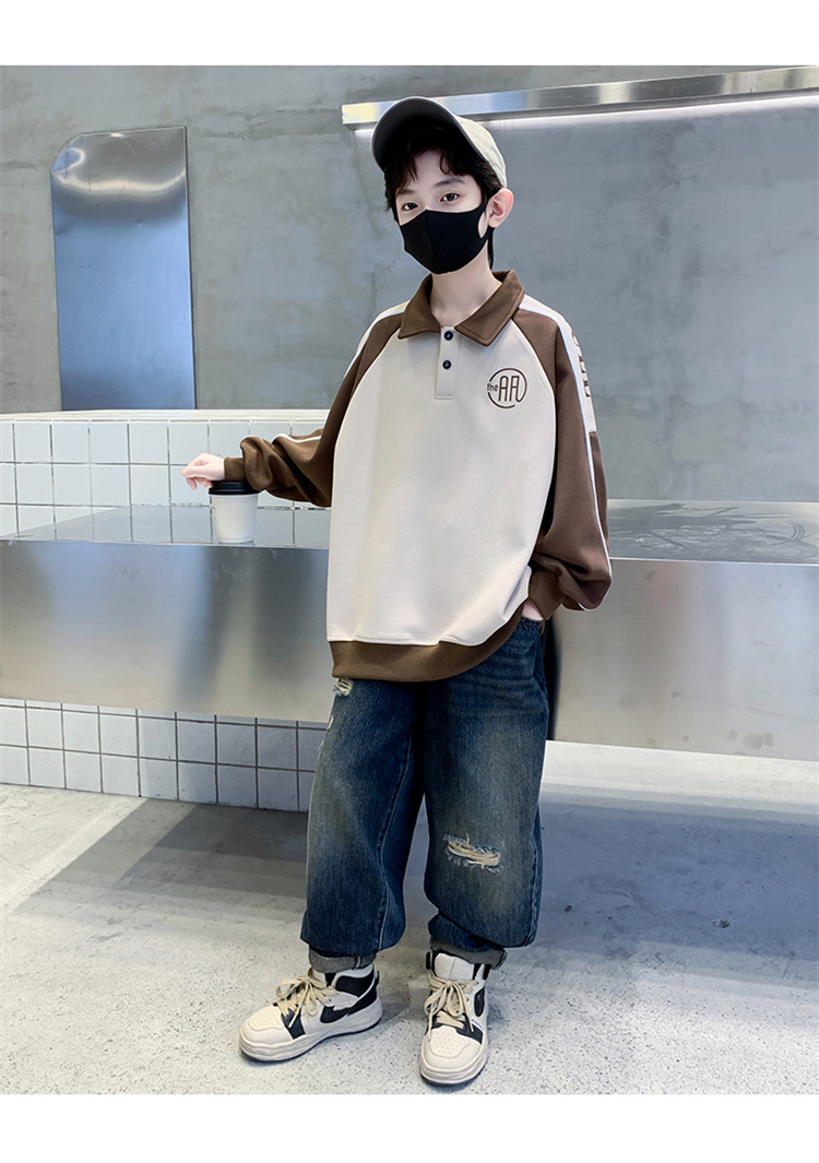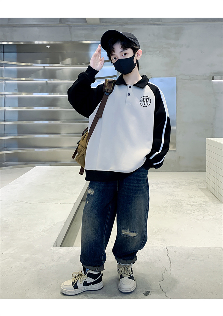 소년의 폴로 칼라 기모 스웨터 가을과 겨울 의류 2024 어린이 서양식 색상 매칭 두꺼운 긴 소매 탑베이스 셔츠스토어 가기